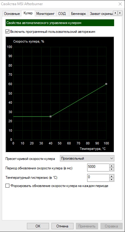 vagoneo Я себе так и сделал, ограничил, но только через nvidia profile inspector, и ещё наклепал 4 профиля с курвой, 0.875 это самый маленький. Надо будет больше производительности выберу другой, делов на 2 секунды, а пока хватает и минимального.