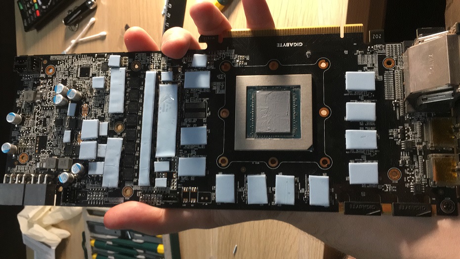 Может пригодится кому, тоже выложу для GIGABYTE GTX1080Ti-Gaming-OC-11G под водоблок BYKSKI нужны термопрокладки толщиной 1 мм на все элементы кроме трех мест, под которые в водоблоке углубления, туда нужны 1,5 мм. В теории можно сложить 1 мм в два слоя, лишнее выдавится при зажатии. Сейчас со скидкой на али 5500 этот водоблок, мне в январе 7400 вышел.