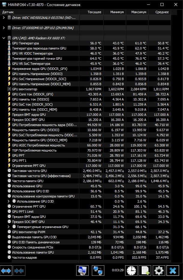 В последние пару дней очень сильно мучился ( температура горячей точки до 100 доходила) потребление больше 238 не шло, не понятные вылеты игры с ошибкой от АМД на вылет драйвера, даже с КС го выкидывало, грешил на температуру, но при этом частоты не понижались, ничего не мог понять, в итоге снёс ещё раз дрова и накатил рекомендуемые майские вроде и на последнем месте пока все норм. Потребление больше 260 иногда и температура стабилизировалась на горячей точнее 84 было.