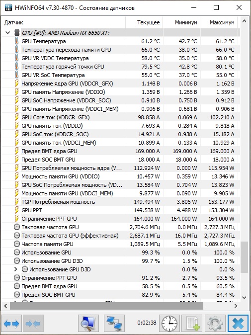 Добрый день, после перехода с 2K на 4K монитор (соответственно и настройки видеокарты поменял на 4K везде), комп начал сам выключаться, в Валхалле после часа игры, в 3dmark проходит только Порт Рояль, а Time Spy в лучшем случае до половины. Карта 6900XT Asrock OC Formula. Корпус NZXT 510i, БП NZXT E850. Снял стекло, вентиляторы и видюхи и корпуса на 100% - без толку, вылеты. Записал Логи через GPU-Z: Греется Hot Spot до 110. Потребление не превышает 250W. Пробовал делать Undervolt - тоже самое - комп сам выключается. Сперва грешил на БП, но по сумме даже до 700W не доходит, реально около 600W. Питание Видеокарты по 3м отдельным кабелям 8 pin идет. Потом грешил на корпус, но открыв его и выкрутив вентиляторы - тоже самое. Явно, что видюха перегревается - именно Hot Spot 100-110 градусов, GPU показывает максимум 80, что можно делать ?