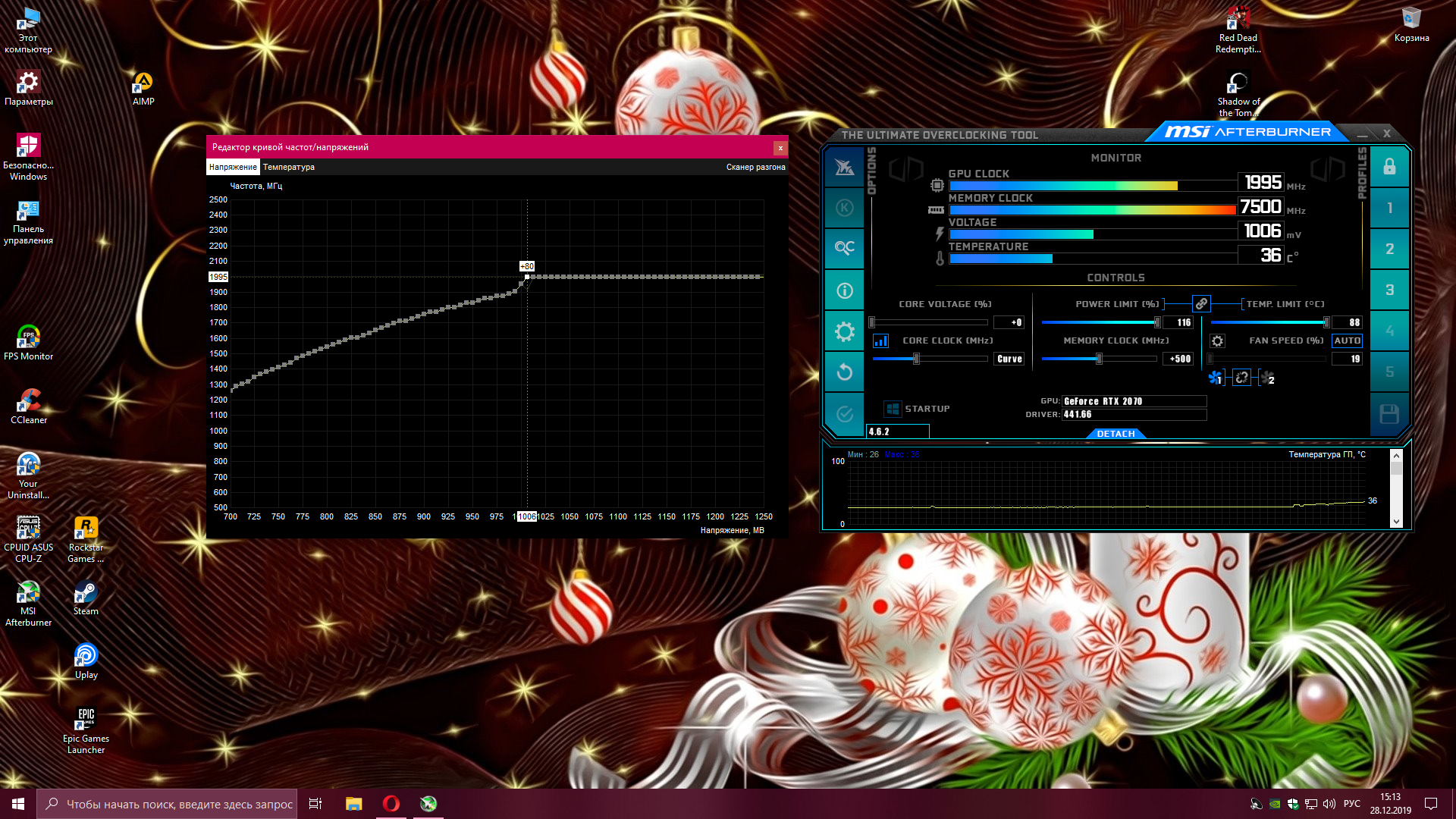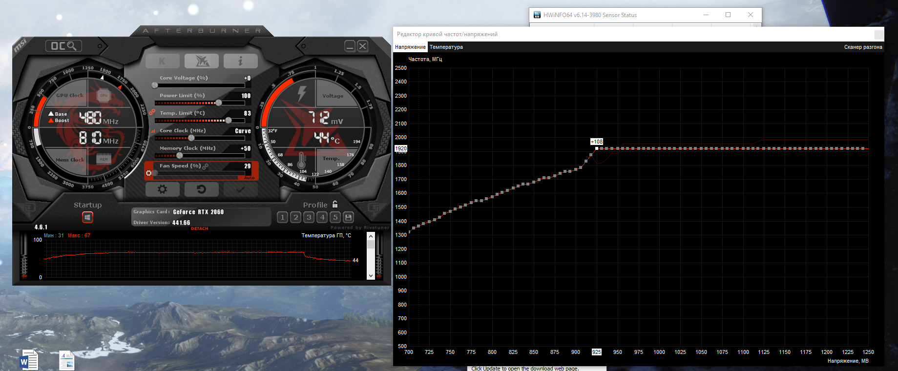 Всем привет, с вами нубас, который в первый раз пытается понизить напряжения на видеокарте, т.к. она самая шумная, а я люблю тишину. Дано: rtx 2060 gaming pro Palit. Что сделал: Выставил напряжение на 0.925, частоты выставил на 1890(выставлял при нагрузке) А вот когда без нагрузки запустить кривую напряжений, показывает, что частота 1920. Это же нормально, да? А то я сначала каждый раз правил, потом забил. Погонял тест MSI, артефактов вроде нет. Так же настроил кривую оборотов куллера, температура теперь максимум 66, раньше была около 64, но теперь меньше шума. Вопрос: Всё ли я нормально сделал? А то вдруг где-то у меня тут фатальная ошибка, а я не буду знать об этом. В ведьмаке смотрел, если при стандарте потребление 161 ват, то сейчас около 128-131. Заранее спасибо.