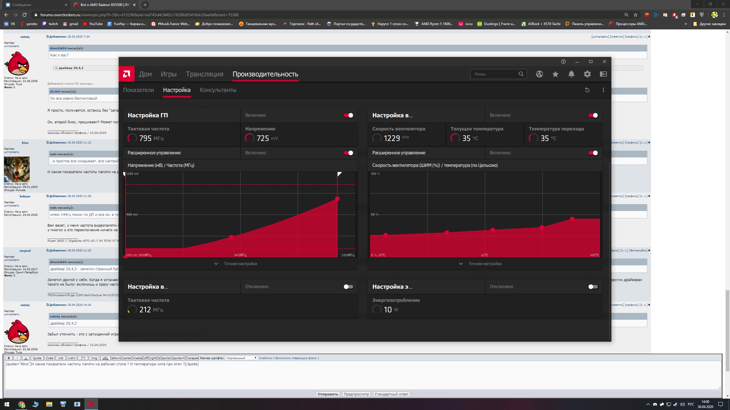 Чего у карты ТОЧНО НЕТ: - Проблем с производительностью в DX11, DX12 и Vulkan (в любых играх и любых режимах). Если не устраивает производительность, смотрите в сторону процессора либо ОЗУ; - Проблем с работой систем энергосбережения (плавающие частоты - это следствие низкой нагрузки или ударения в пауэрлимит, а не причина низкого фпс); - Проблем с работой FreeSync (не смотрите по AMD Windmill, там некорректно работает ограничение фпс на 5700, из-за чего фреймтайм супернеровный); - Проблем с черными экранами и вылетами (это аппаратная неисправность карты - если с таким столкнулись, срочно меняйте карту в магазине на другую (по предварительным наблюдениям карты Gigabyte такому подвержены больше остальных). Единственное - удостоверьтесь в качестве кабеля от карты до монитора - если он новый и неизвестно, как он работает с другими карточками, проблема может быть и в нем).