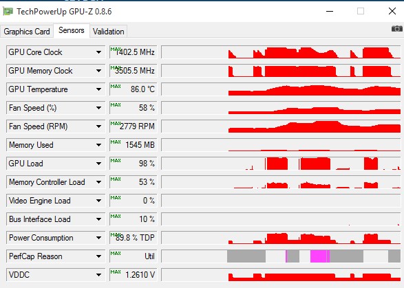 смотрим подается ли указанная напруга и до какой частоты бустит карта. И так, имею я напругу 1.231в и частоту 1304МГц. У вас
