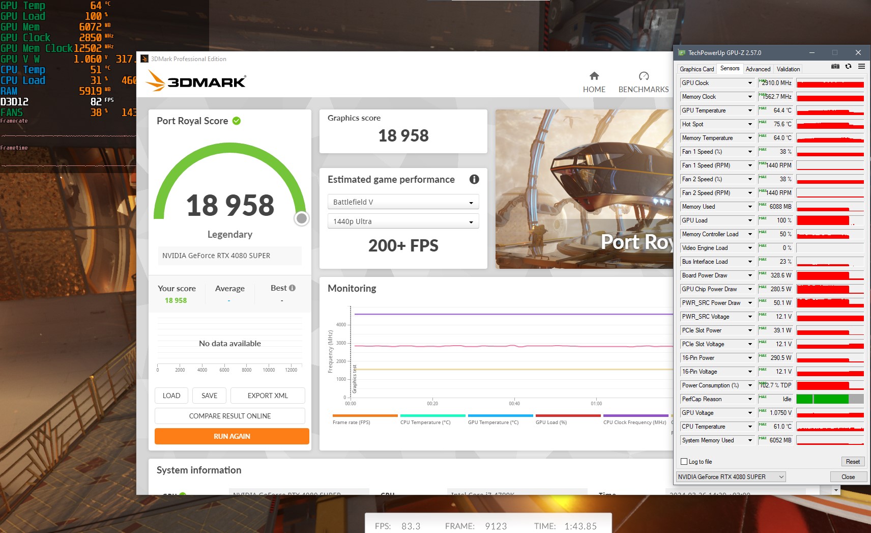 бенчи принято гонять с gpu-z где все значения в статусе max, а так толку то что гонять.
