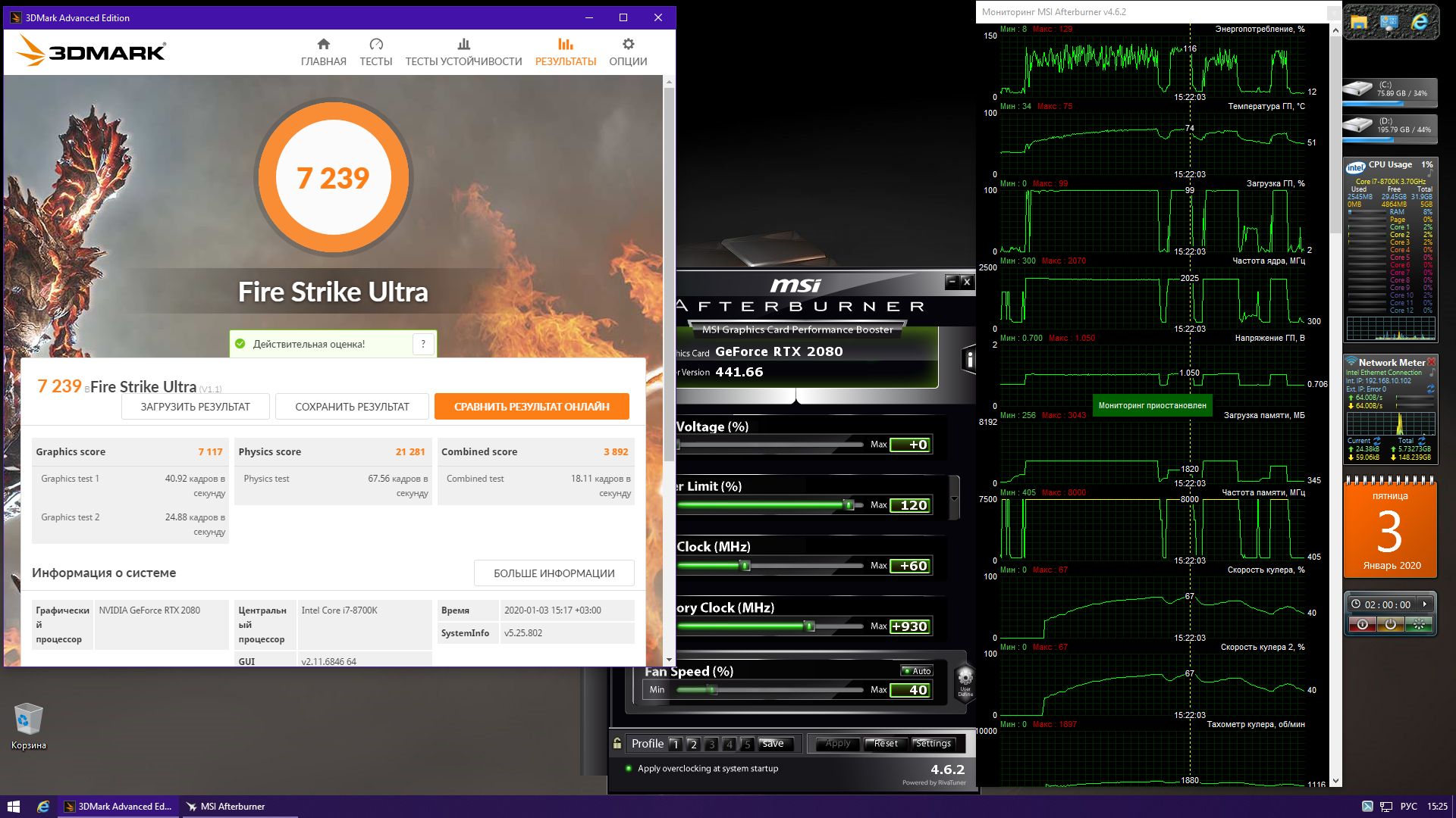 Да успокойся ты, всерьёз что ли бредней наслушался что 2080 супер чуть ли не тишку догоняет, ближе 20% не приблизишься, бесполезный номер. Вон для сравнения моё, 5.6% твоя быстрей по графике что и должно и быть, а тишка от моей минимум была на 30% впереди, так что. https://www.3dmark.com/3dm/42629141