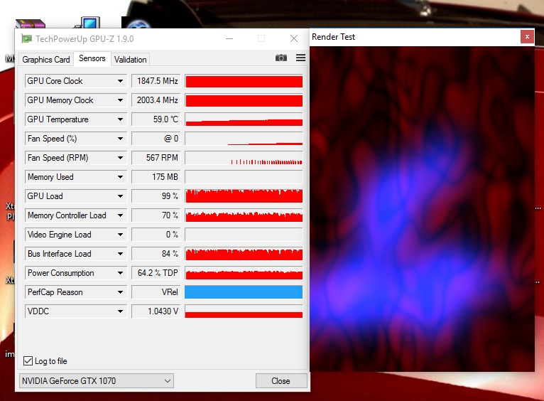К примеру у меня с биосом суперджета в дефолте в рендер тесте GPU-Z до 50ти градусов бустит 2037 при 1.43В, на 50+ повышается напряжение до 1.05В, на 55+ уже подпрыгивает до 1.062В, далее на 60ти сбрасывается напряжение до 1.05В и частота до 2025