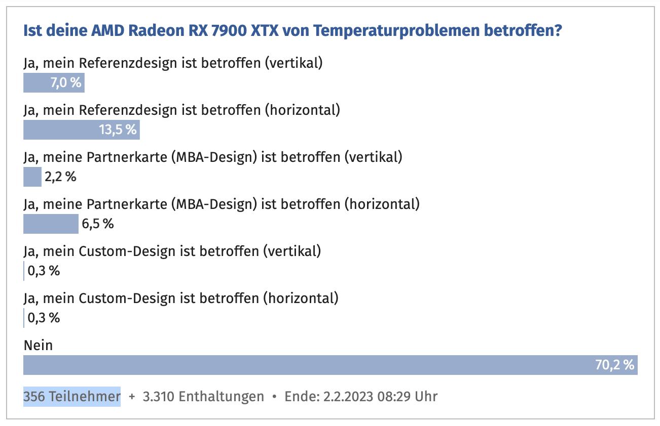 Понятно, что выборка небольшая (356 голосов), да и это всего-навсего голосовалка в Интернете, плюс голосовать будут очевидно в основном те, у кого проблема, но всё-же. Напомню, что на момент продажи 125 тысяч карт RTX 4090 было лишь порядка 50 случаев оплавления новых коннекторов питания, что составляло 0.04%. Но сейчас придёт Vorvort, и скажет, что это просто агенты Хуанга голосовалку накручивают.