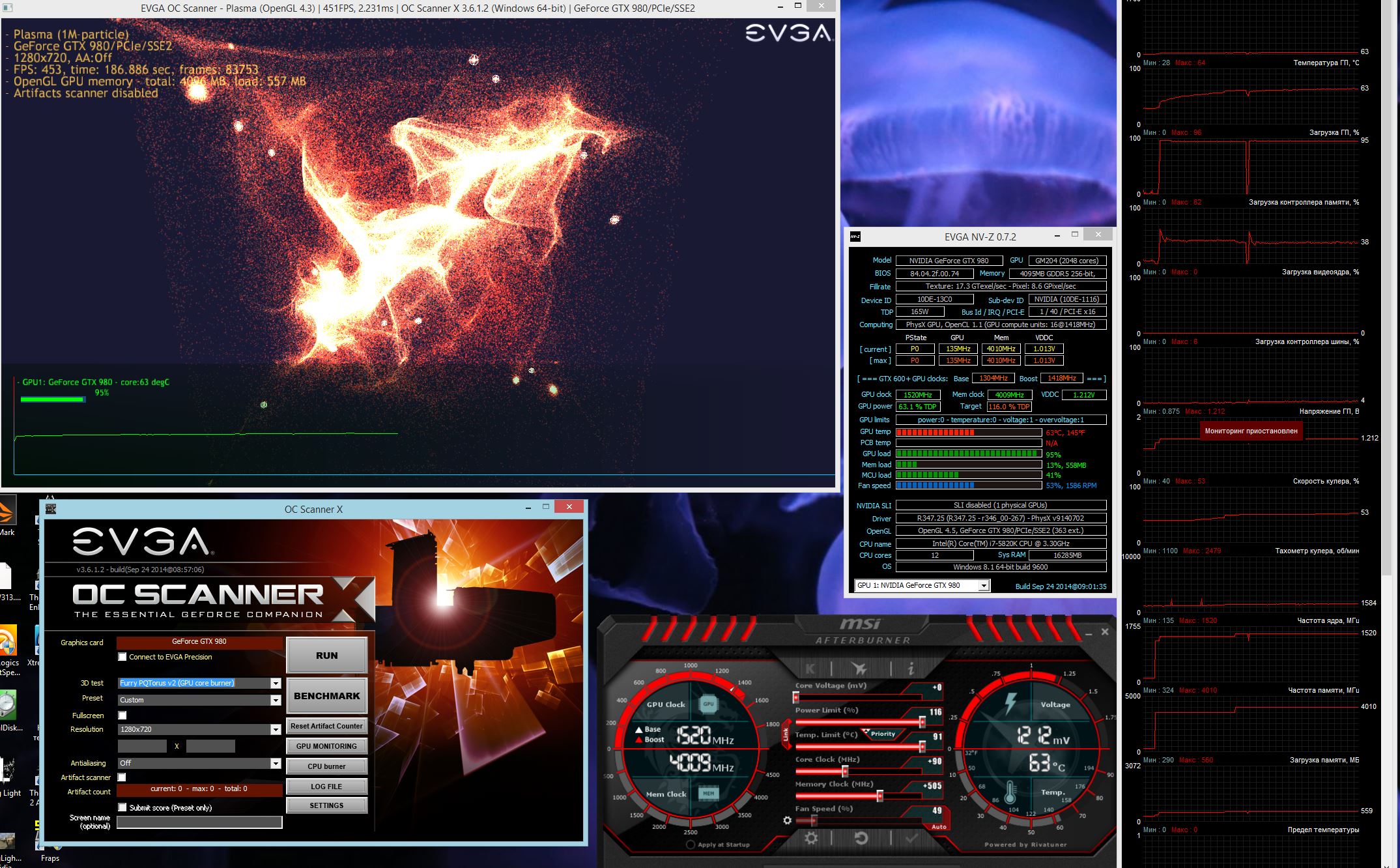 olfirsпривет!будь добр,скинь скрины или видео как твоя 980-ая в стресс тестах себя ведет,я приобрел себе Asus gtx 980 strix как-то у нее параметры в тестах скачут,с 0 до 100 загрузка GPU и температура тоже,резко на 8-10 градусов туда сюда скачет,че за херь не пойму!!!