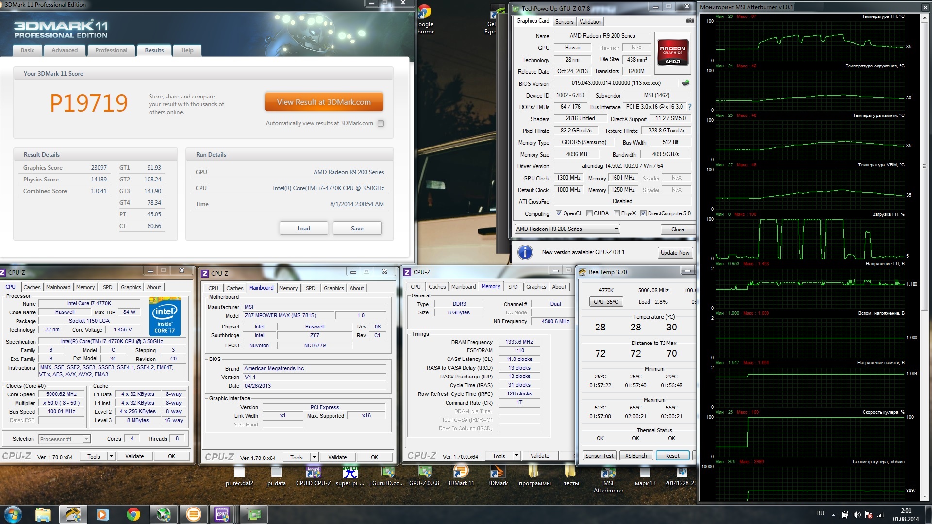 Погонял в FurMark свою MSI R9 290X Gaming 4G (предварительно отключив кросс в Каталисте, и убрав видеоадаптер из 2-го слота).