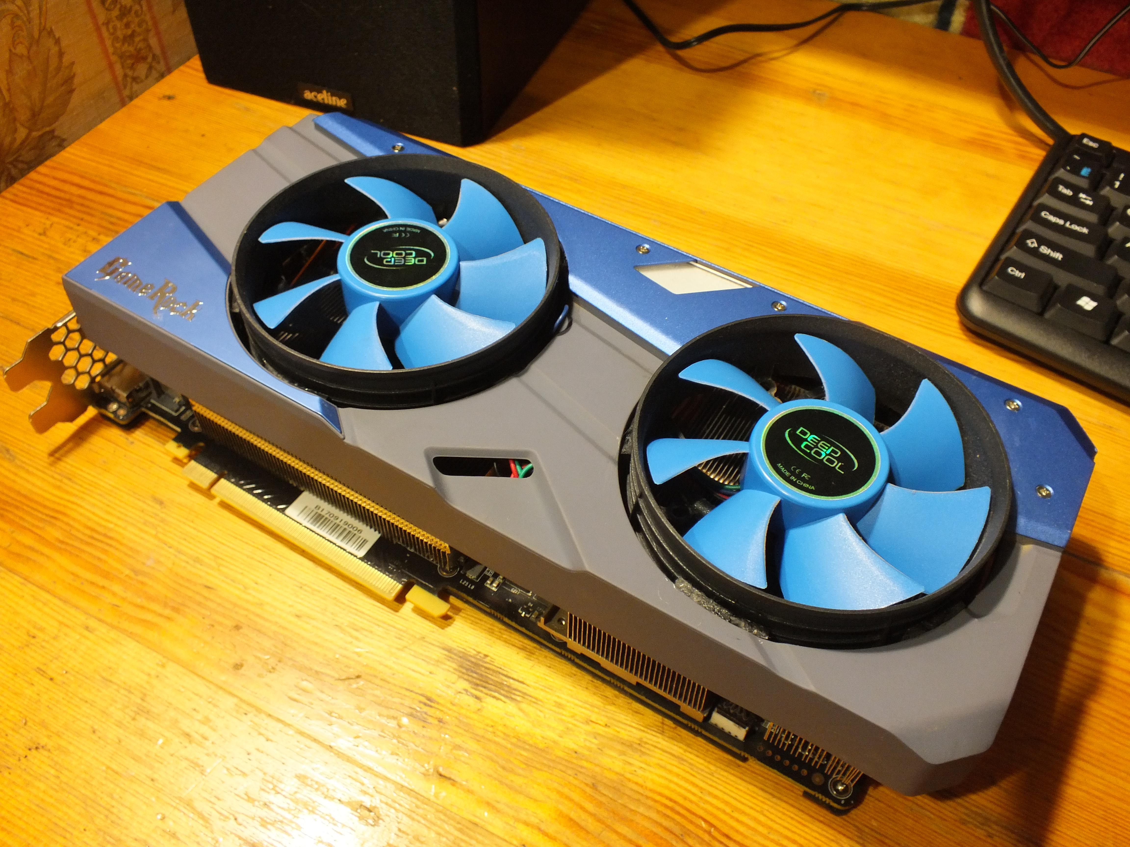 Ну и для справки. Диаметр отверстия в корпусе видеокарты на пару-тройку соток меньше 100-а мм. Наружная поверхность корпуса вертушек не гладкая, с рёбрышками и вот по этим рёбрышкам диаметр 95-96 мм. Штекера вертушек больше разъёмов на видеокарте, потому их обрезал и спаял все проводочки с теми, которые идут от штекера на самой видеокарте.