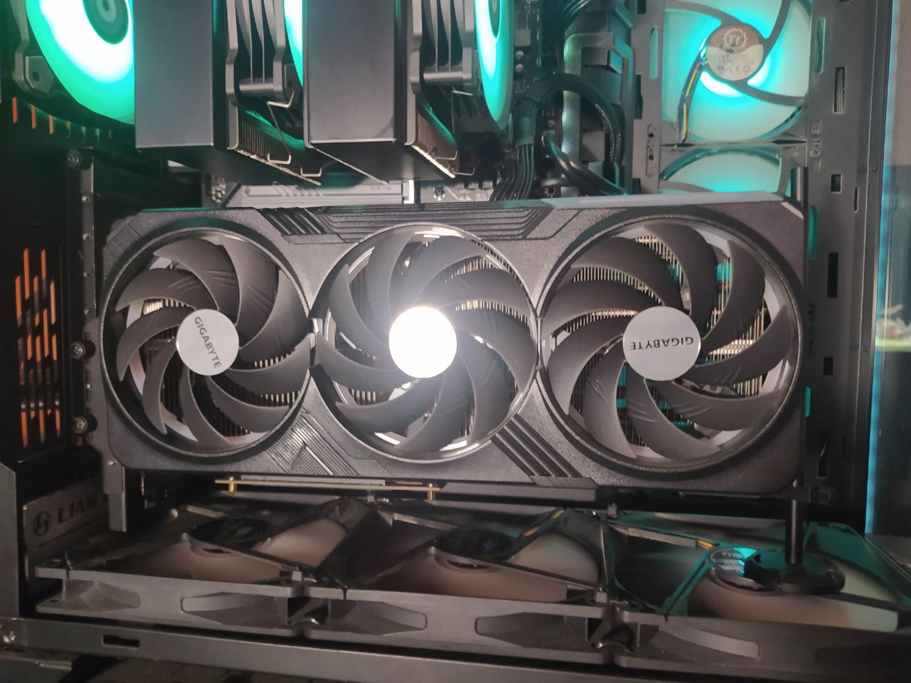 Низ три 140 мм на вдув. Да же не во всех играх срабатывают винты видеокарты, с таким раскладом. Верх три140 мм на выдув Зад один на 120 мм на выдув Бок три 120 мм на вдув. Корпус LIAN LI PC-O11 Dynamic XL , кул нокта с двумя 120 мм. В играх 12700 холодный. Видеокарта.., райзеры не мешают от слова (совсем).
