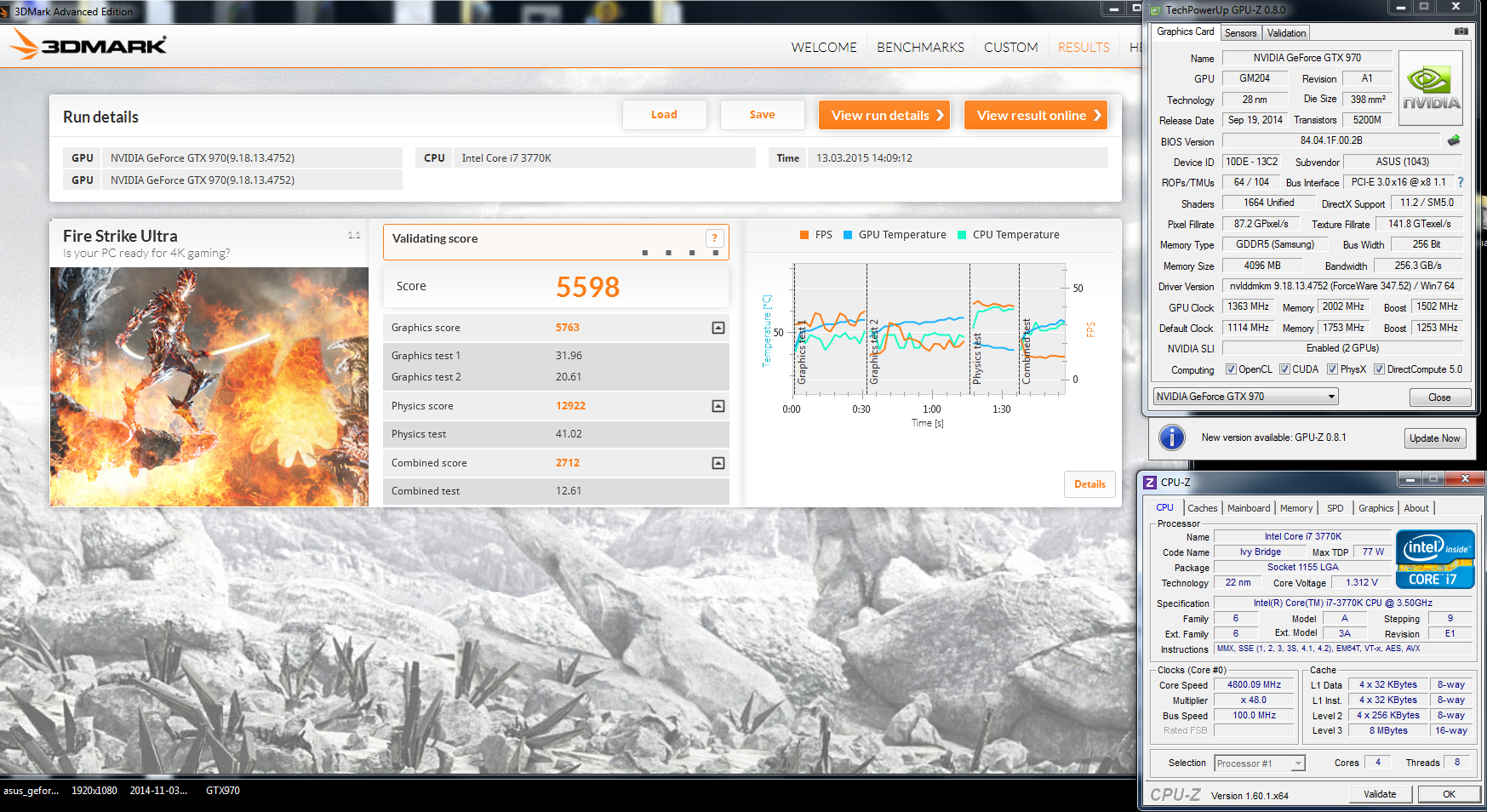 SK.art 3дмарк занижает. Моя была разогнана до 1500, но в тесте просела до 1450 из-за PowerLimita, а 3дмарк зачел ее как 1300. Наверное, считает без турбобуста, так что вполне возможно что gtx 970 там работает на 1700+ Ну и то что проц 5820K@4.2Ггц-11450 очков, а 5820K@4.7Ггц-11587 совсем грустно. Раньше марки больше давали за CPU, а тут к 6 ядрам прибавили пол гигагерца и ему пофигу.