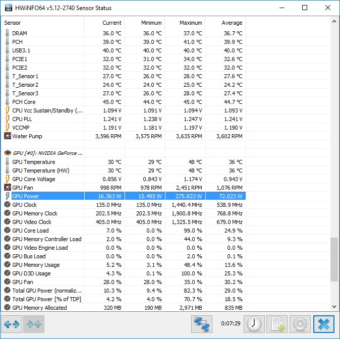Обращал кто внимание на значение GPU Power в HWiNfo? На скрине значение в 275W, которое соответствует моим стабильным частотам после прогона в 3dmark FU. Интересно посмотреть на это значение, кто гоняет на частотах 1500/2000