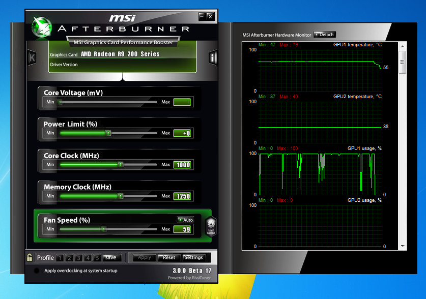 Индульгатор В Риме утилизация ГПУ через MAB - такая же пила от 0 до 100, но это не есть правда, т.к. если смотреть в GPU-Z, то там она пляшет около полтинника. Подлагивания есть, но это заслуга creative assembly. На зелёной карте всё обстояло гораздо хуже: жена любит врубить ROME2, пока я на работе, причём врубит утром и периодически подходит - ткнёт пару разу, а вырублю вечером уже я. Так вот, на Ge-Force GPU usage был всегда 100%, причём не падал даже если свернуть приложение, т.е. референсная турбина GTX 570 неплохо обогревала комнату и боязнь за её выживание была из 1-х причин покупки 290Х. Зелёнку одолжил на работе, где их без дела валяется ещё много (видимо специально радеоны не поставляют, чтобы не майнили сотнями компов за гос счёт), так что дело не в жадности, а в гуманизме.