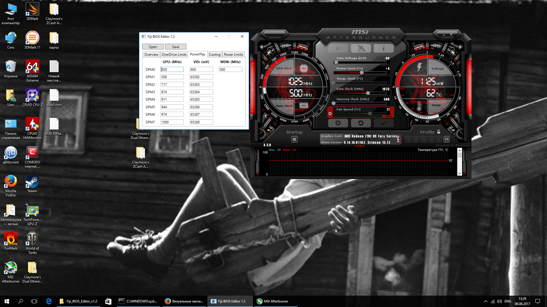 открываю Fiji BIOS Editor 1.2 - а там непонятный набор цифр по частотам