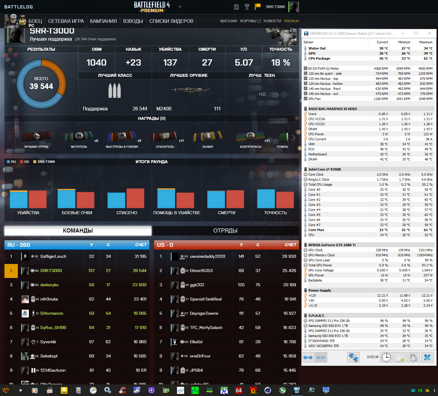 Ещё 2,5 часа поиграл, вроде нормально. Хотя чуть в штаны ненаделал, когда-то что-то неожиданно взвыло, думал турбина, а это оказывается жена чайник поставила)