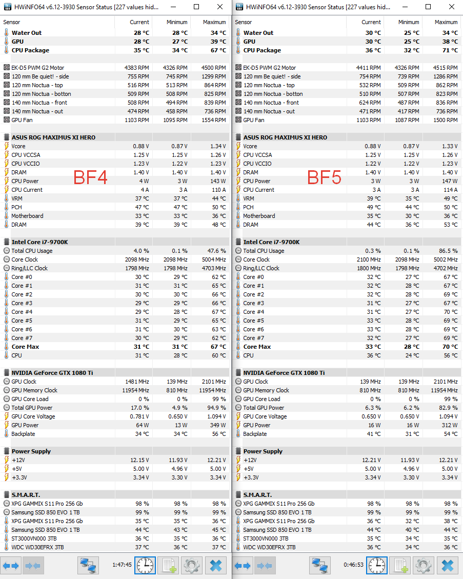 https://forums.overclockers.ru/gallery/ ... e_id=41576 Год назад менял на FTW3. Проверял сразу после замены, в идентичных условиях, как по температуре в комнате, так и по продолжительности (30-минутный прогон в Deus Ex Mankind Divided). Скрин по центру - до замены, справа - после.