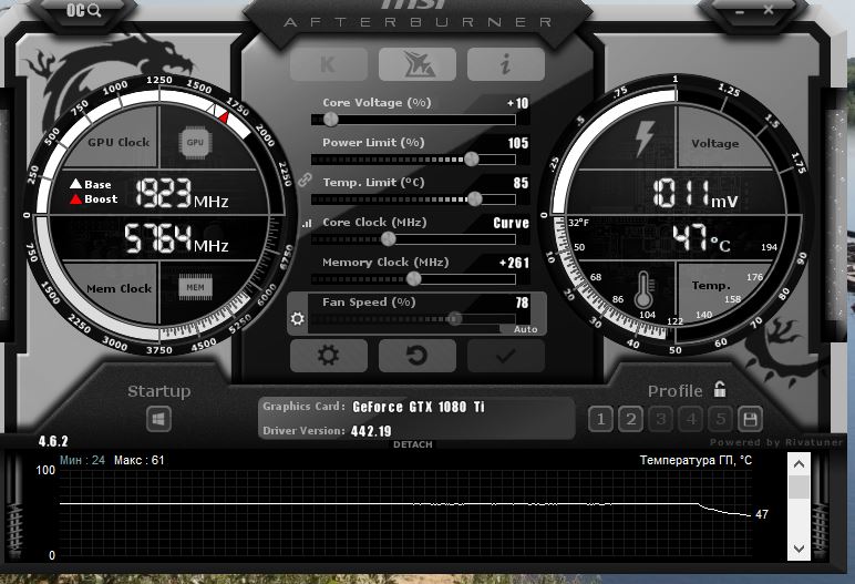 Ну это ваше право- не верить, но вот сделал скрин специально, примерно через полчаса игры. Все на макс, волосы выкл, разрешение через DSR увеличено не помню насколько. Поверлимит еще поднят, 105%, в противном случает карта долбится в него (лимит) и иногда сбрасывает частоту