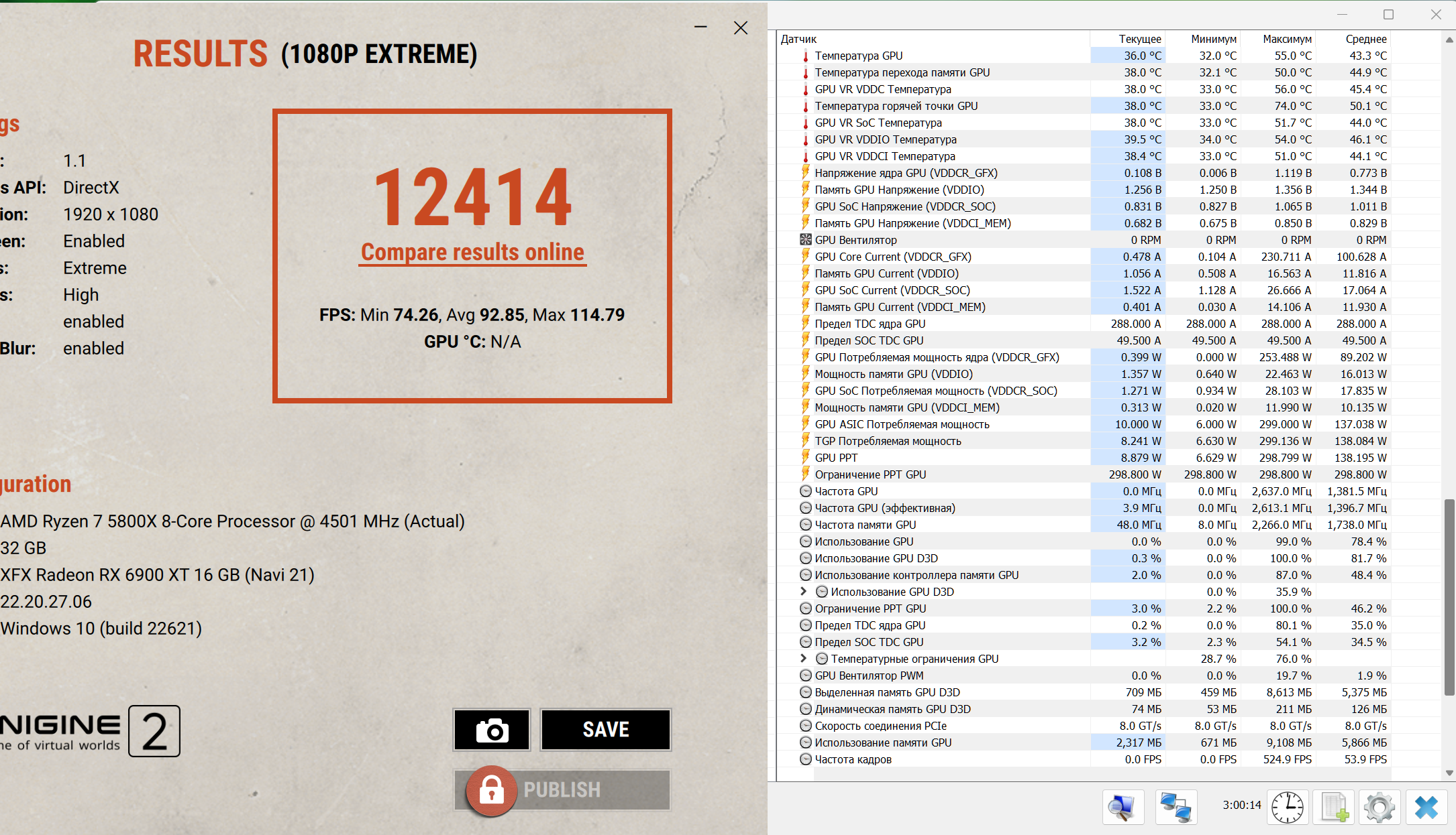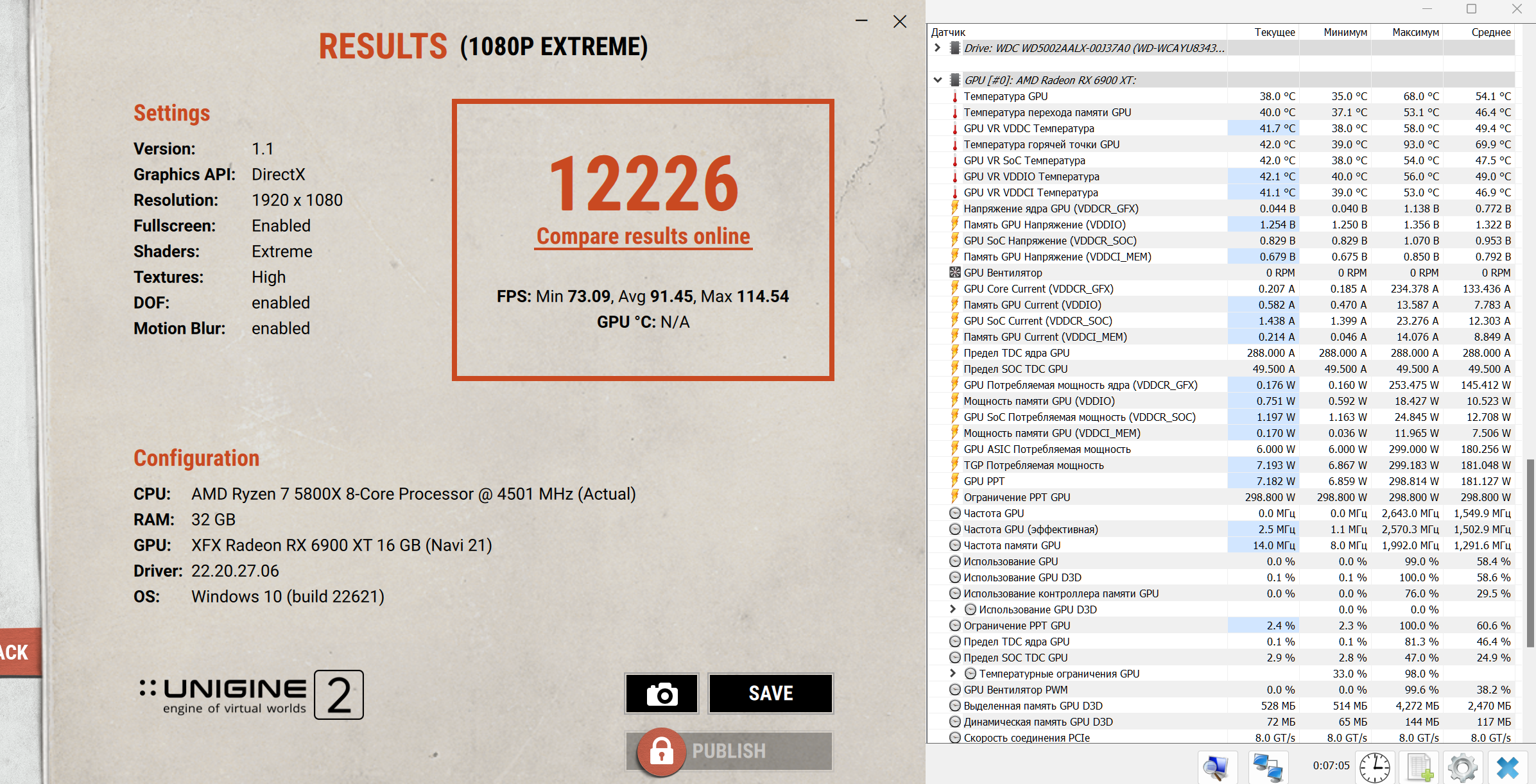 Всем привет. После нового года дошли руки пересобрать карту. Имею XFX 6900XT Zero EKWB , с заводским водоблоком. Карта куплена с рук у чела с репутацией, на гарантии еще месяц. После покупки на карте были достаточно высокие температуры Вот например после часов 5 игры в Вартандер в 2к все настройки вправо. ПО чипу 73 По хотспоту 97 ) Было решено перейти на жидкий металл Cyberblood Mk1 В итоге было