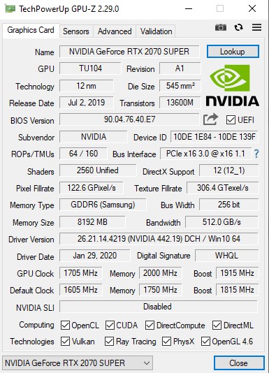 Производительность У меня были 2 разные RTX2080, одна Асус стрикс, друга Палит джетсрим. И обе они не держали атк стабильно частоты как КФА2, что удивительно. По ФПСу в Far Cry New Dawn с разгономм результаты оказались на 1-2 фпса лучше чем у РТХ2080 у палита (с +40 к чипу и памятью, вроде +700 там было) этому я очень удивлен, возможно у меня не корректный какой-то скриншот остался с которым я сравниваю. По результатам 3DMark 2070 супер набирает на 4-5% очков меньше, чем ртх 2080 Ниже ссылки на скриншоты, но форум их сломал, надо убрать лишнюю точку.
