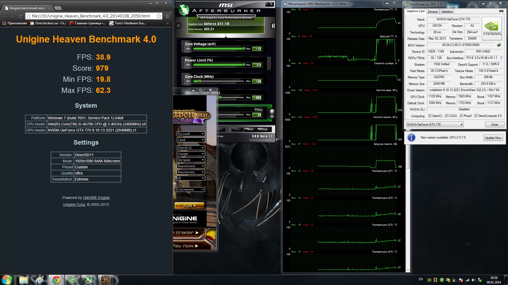 Pulay фурмакр сотри. толку от него как припарка мертвому. хевен болеет требователен чем игры примерно на 40-50мгц по поводу плюс 50, никто не знает какой у тебя буст, буст у каждой карты разный. хотя бы написал бы какой изначальный буст.