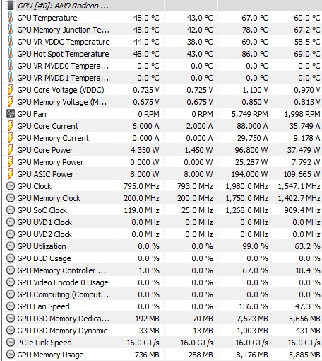 - Чем отличаются reference карты 5700/5700XT/5700XT AE разных производителей? Ничем не отличаются, карты изготавливаются одним из партнеров AMD, все карты абсолютно одинаковые и не важно в чьей коробке вы покупаете карту: HIS, PowerColor, ASROCK, Sapphire, Asus, Gygabyte, MSI и др. Значение имеет только цена и гарантийный срок в конкретном магазине. - Возможно ли прошить модифицированый vBIOS? Нет. В последних поколениях карт Radeon (Vega 56/64 - Vega VII - 5700/5700XT) стоит железная защита от записи неподписанного файла vBIOS. По последним данным всё-таки можно. Существует риск окирпичивания карты. Подробнее в разделе Undervolting, SoftPowerPlay Table Registry-Mod (MPT), vBIOS Edit - Возможно ли прошить 5700 файлом vBIOS от 5700XT? Да, на референс карте такое возможно. Но карта становится громче и прожорливее. Да, такое возможно и на нереференсе. Пока только один пример по прошивке Pulse 5700 неXT биосом от XT. - При ручной регулировке карты Zero RPM отключается, карта перестаёт быть полупассивной. У всех так? Да. - Необходимо ли переустанавливать ОС перед использованием карты? Да, это рекомендуется сделать, во избежание различных проблем. Части пользователей делать это не пришлось. Никакой зависимости определить не удалось. Но в большинстве случаев использование карты на чистой системе решало много проблем (черные или синие экраны, статтеры, вылеты на рабочий стол). Рекомендуется установить последнюю версию Windows 10 1903/1909. - Необходимо ли использовать DDU перед использованием карты? Да, в случае если нет желания заниматься установкой "чистой" ОС, необходимо предварительно хотя бы произвести удаление предыдущих дров с помощью DDU. При этом необходимо учитывать, что DDU может снести и драйвера чипсета. Поэтому после чистки дров рекомендуется повторная установка как видеодрайвера, так и драйверов чипсета. - У меня матплата на XXXX чипсете. Будут ли на ней проблемы совестимости c RX 5700 (XT)? Да, возможны разного рода проблемы, если материнская плата не поддерживает UEFI или слоты PCIE ниже 3 версии с количеством линий меньше 16. - Что такое Junction Temperature или Hot Spot Temperature? А что такое Edge Temperature? Ответ здесь и здесь Но если вкратце, то Junction Temperature или Hot Spot Temperature - это температура самого горячего места внутри кристала по показанями множества датчиков (у каждого кристала своя). А Edge Temperature или GPU Temperature - это просто температура ядра, средняя между всеми датчиками температуры в кристалле. Разница между этими двумя показаниями может достигать от 10 до 20 градусов и выше. - Что использовать для оценки производительности видеокарт и стабильности разгона? Игры. А потом уже тесты Unigine Superposition (1080p Extreme), 3DMark FireStrike Ultra и TimeSpy Extreme. Использовать Kombustor и Furmark для этих целей не рекомендуется, данные тесты больше подходят для оценки эффективности системы охлаждения карт, так как очень сильно нагревают элементы карты. - Что за проблема с черным экраном при просмотре видео в браузерах? Это баг браузеров при работающем аппаратном ускорении. Также аппаратное ускорение в таких приложениях как discord, steam и подобных (в которых используется код хромиума или другие вебэлементы) может влиять на работу карт. - Хочу отключить файл подкачки, чтобы не насиловать свой SSD. Стоит ли это делать? Нет, не стоит. Файл подкачки необходим для нормальной работы вашей ОС. - Где список карт RX 5600 XT, на которых доступна быстрая память 14Gbps? Вот это список. Карты уже либо с завода прошиты обновленным vBIOS, либо есть возможность для сам