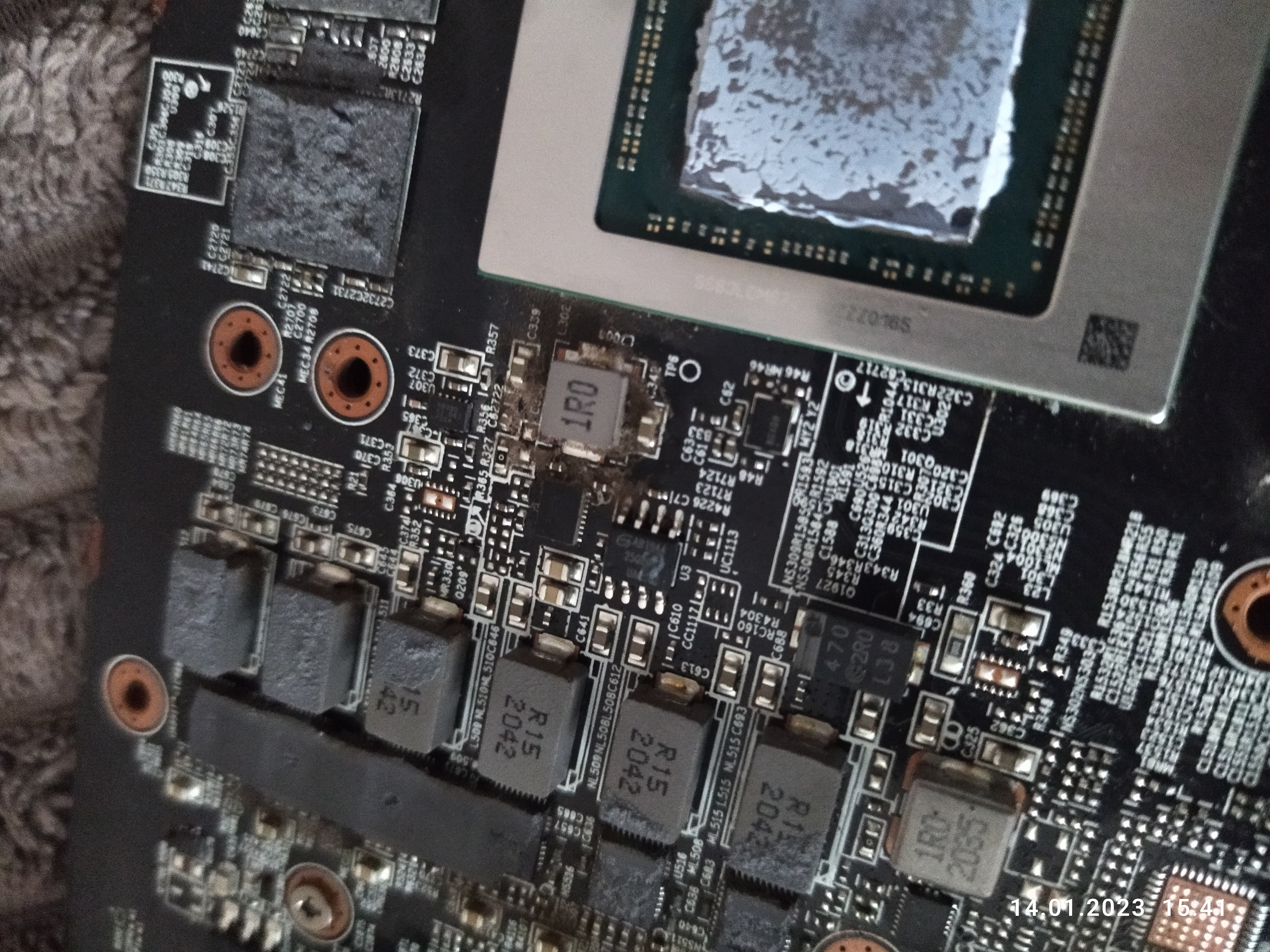 Термопаста камень, термо прокладки рваные. Что это за элемент на скрине жёлтый? Не могу понять пыль это или флюс Что такое 1r0 ??