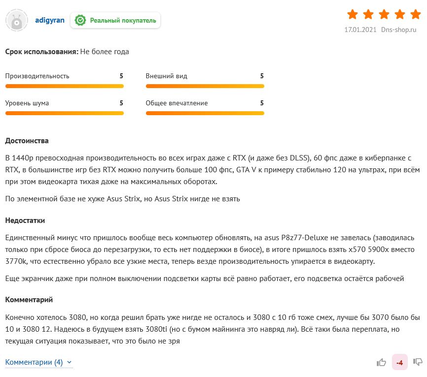 И из отзывов на 3070 в ДНС