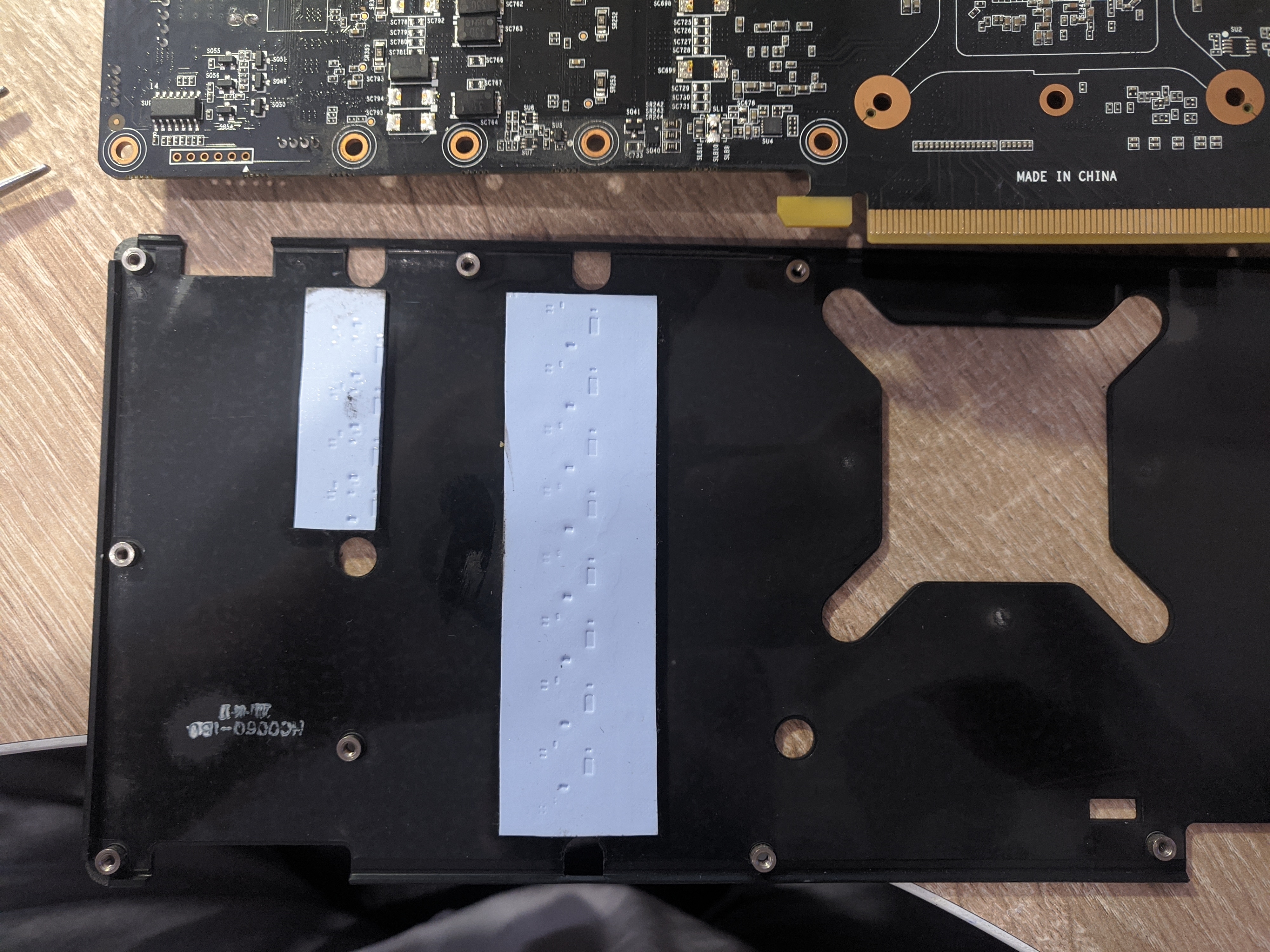 Пока не готов сказать, т.к. карту брал у майнера, он её и обслуживал, но, судя по гарантийной пломбе, он её и не разбирал даже, видимо, с завода. Сам пока заказал термопрокладки с Aliexpress, как приеду, отпишусь сразу по установке, размерам более точным, подходят или нет. Как правило рекомендуют Arctic Pad или Grizzly Pad, но они по цене кусючие какие-то, поэтому сильно голову не ломал и взял так называемый noname.