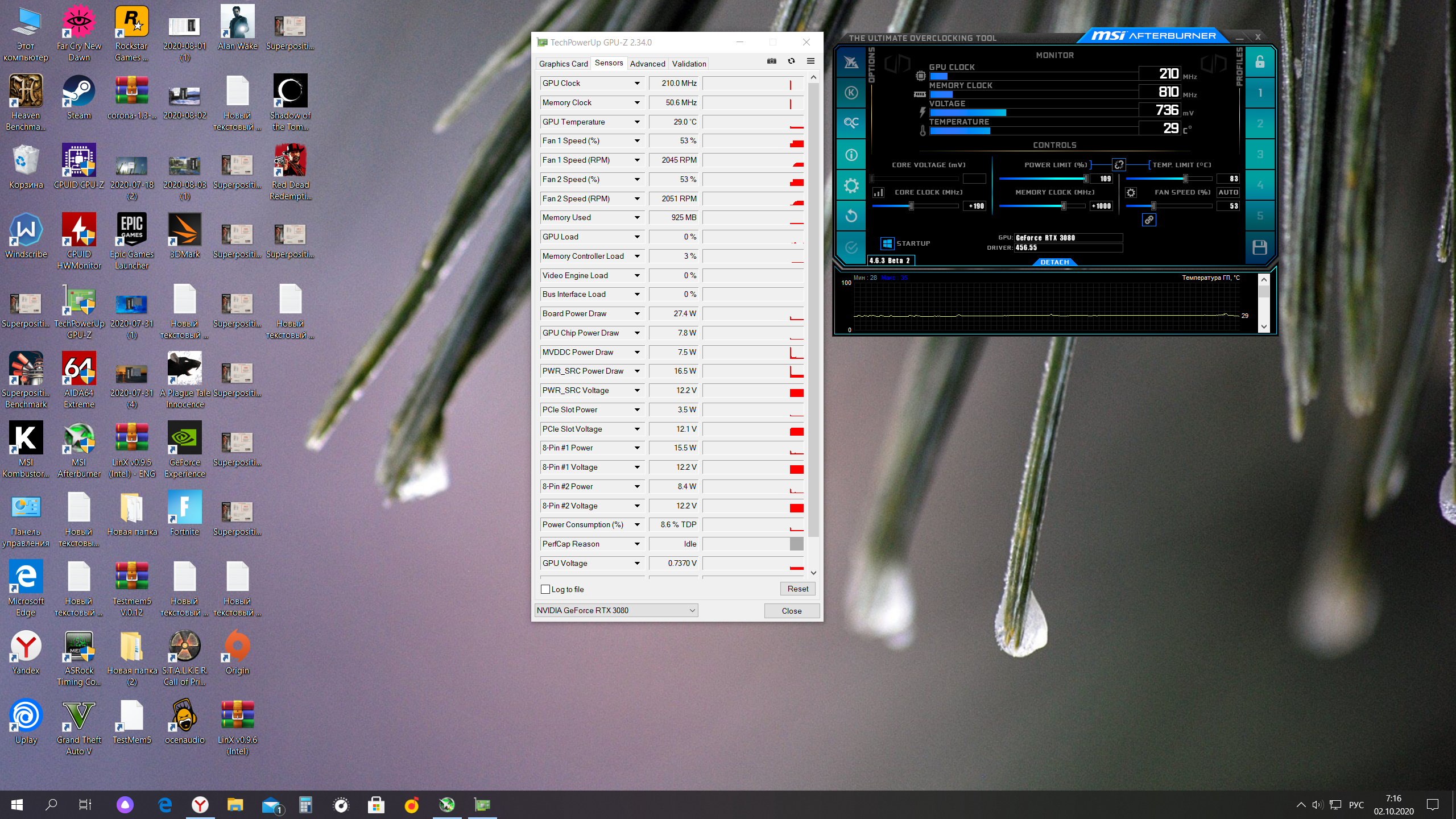 16.09.2020 - создание темы, добавление ссылок на обзоры RTX3080 17.09.2020 - обзоры Palit RTX 3080 GamigPro OC, MSI RTX 3080 Gaming X Trio, Asus TUF RTX 3080, Zotac RTX 3080 Trinity, информация по блокам питания 19.09.2020 - обзор Gigabyte RTX 3080 Eagle OC 10G, Nvidia RTX 3090 22.09.2020 - косметические правки, добавление ссылок 23.09.2020 - добавление базы данных с сайта overclock (спасибо coka) 24.09.2020 - добавление обзоров 3090 26.09.2020 - полезная информация по видеокартам Аmpere (алгоритм работы вентиляторов, причины проблемы с boost), и другое 30.09.2020 - дополнение к полезной информации, добавление обзоров RTX 3090, правки в оформлении 02.10.2020 - начато заполнение F.A.Q. 06.10.2020 - начат сбор статистики по видеокартам 08.10.2020 - добавлена информация по видеокартам Palit RTX 3080/3090 серии GamingPro и GameRock от Palit Support 09.10.2020 - в F.A.Q. добавлена информация по видеокартам Palit, поддержке VRR и прошивке BIOS. Косметические правки 10.10.2020 - добавлены ссылки на обзор архитектуры Ampere. В F.A.Q. добавлена информация по GPU Boost и лимитам. 29.10.2020 - добавлены обзоры на RTX 3070 от разных вендоров 31.10.2020 - информация по драйверам 04.10.2020 - в F.A.Q. добавлено пособие по работе с кривой MSI Afteburner 06.11.2020 - изменения в F.A.Q. по отличию видеокарт Palit 18.11.2020 - добавлена информация в F.A.Q. по BIOS от Palit и EVGA 20.11.2020 - дополнен F.A.Q. (достаточность RTX3000 для FHD/QHD/4K мониторов) 25.12.2020 - дополнена полезная информацию по картам 28.01.2021 - пример настройки курвы 03.02.2021 - обзор EVGA 3080 с андервольтингом 04.03.2021 - добавлена информация по замене термопрокладок на RTX 3080 31.03.2021 - добавлен BIOS с поддержкой Resizable BAR от Palit 05.08.2021 - добавлены обзоры 3080, 3080Ti, 3090 от occlub 12.02.2022 - добавлена информация по термопрокладкам 21.02.2032 - добавлена информация по термопрокладкам от T[]RK