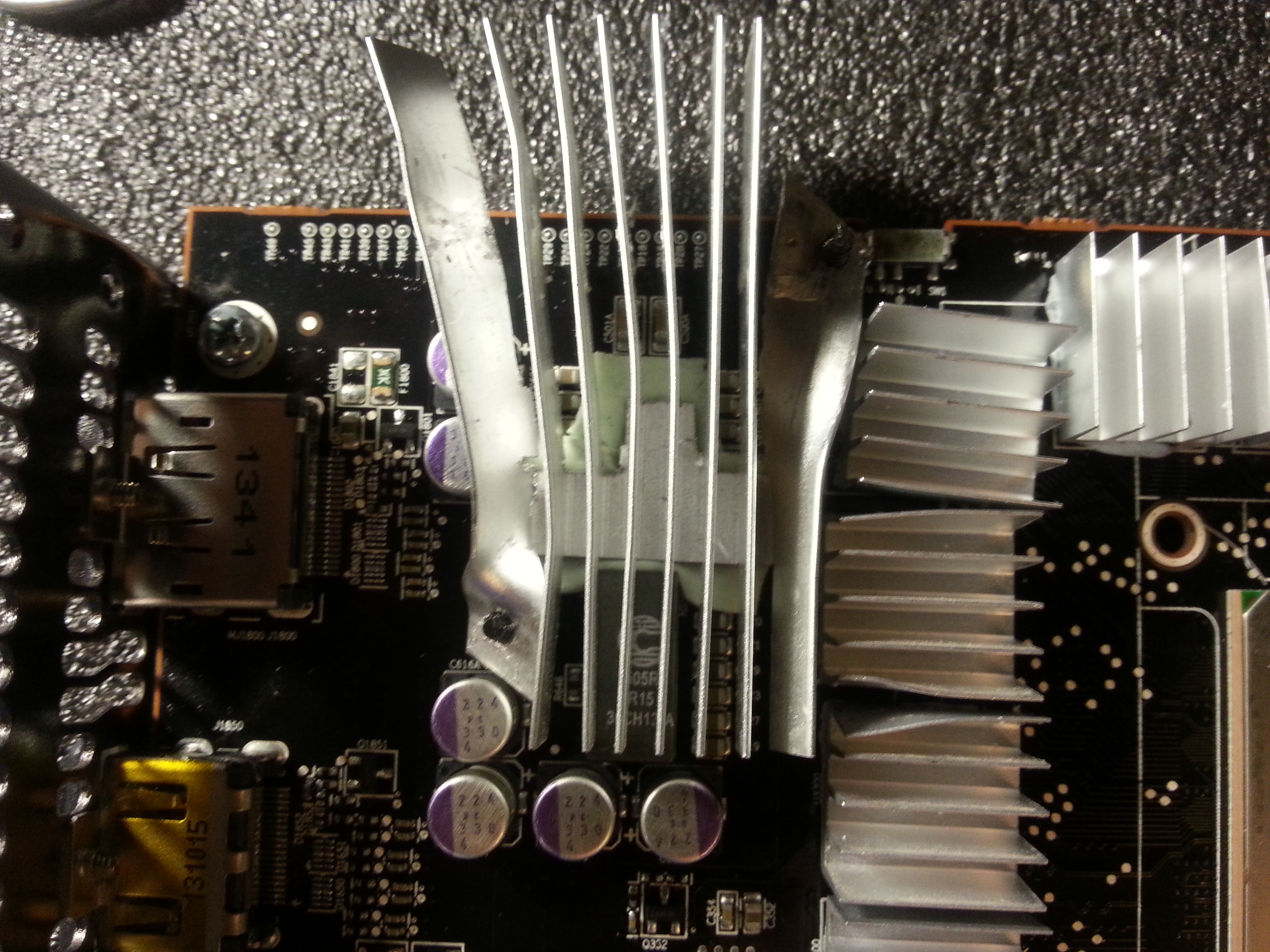 стоит гибрид ,температура чипа 69 ,паста MX-4 ,VRM-2 тоже 69,на VRM-1 прокладка с родного охлаждения.ломал голову как закрепить радиатор на VRM-2 и вот что надумал .