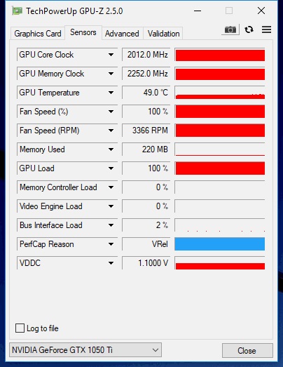 У моей если до 100% кулеры раскрутить,то сначала 2025,а потом падает до 2012/2252,но от таких оборотов аж стол трясется Это наверное предел для 1050ти.