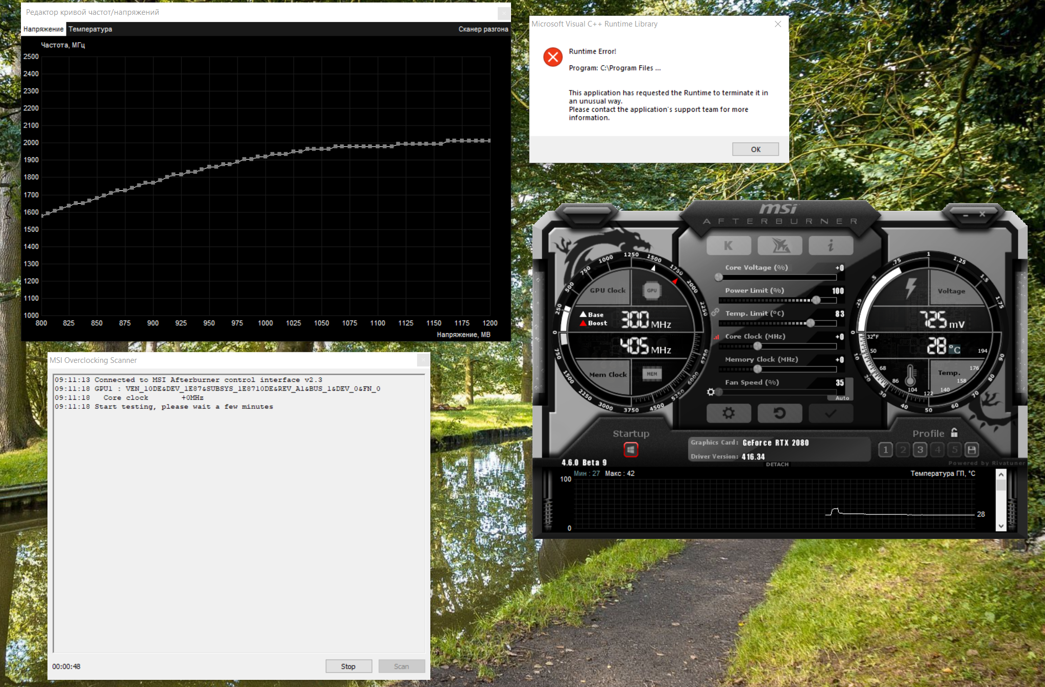 Mad MaxЧудесно! alexsecl У MSI TRIO лучше охлаждение...все-таки 2ух вертушек, как на Palit для 2080 TI недостаточно...температура критической не достигает, но греется прилично, пришлось переделывать охлаждение в корпусе, теперь с расширенными лимитами и разгонами максимум 76 градусов, у MSI можно настроить почти бесшумную работу с температурой до 70 по чипу