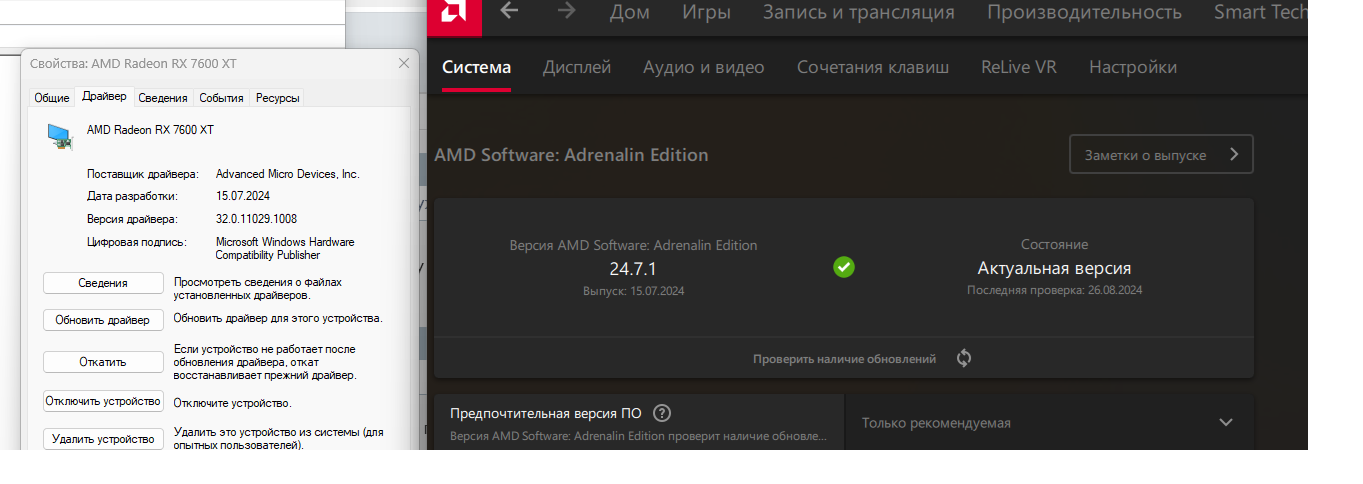 Имеется Gigabyte 7800 XT GAMING OC. Гонял её на двух разных конфигах - один на и9 10940х, второй на и7 13700 - везде одна и та же проблема: Периодически вылетают черные экраны. Причём комп зависает наглухо и приходится делать сброс. Причём может вылететь как в игре, так и почти без нагрузки в браузере. Может вылетать раз в день, а может и неделю нормально работать. В общем, случайным образом. Единственное, с высокой долей вероятности черный экран вылетает в гта 5 в миссии когда Франклином залазишь через окно в дом Майкла. Вот в момент залезания в окно с вероятностью примерно в 50% и вылетает черный экран. Так же в Андромеде периодически вылетает черный экран когда пользуешься гравитационным подъёмником. Пробовал менять платформу, кабели для монитора, частоту монитора, отключать фрисинк, обновлял дрова с дду, менять вин 10 на вин 11. Экраны вылетают всё равно. Видеокарту не разгонял. Пробовал даже поверлимиты на 10% через драйвер снижать. На всякий случай монитор гигабайт м32q.