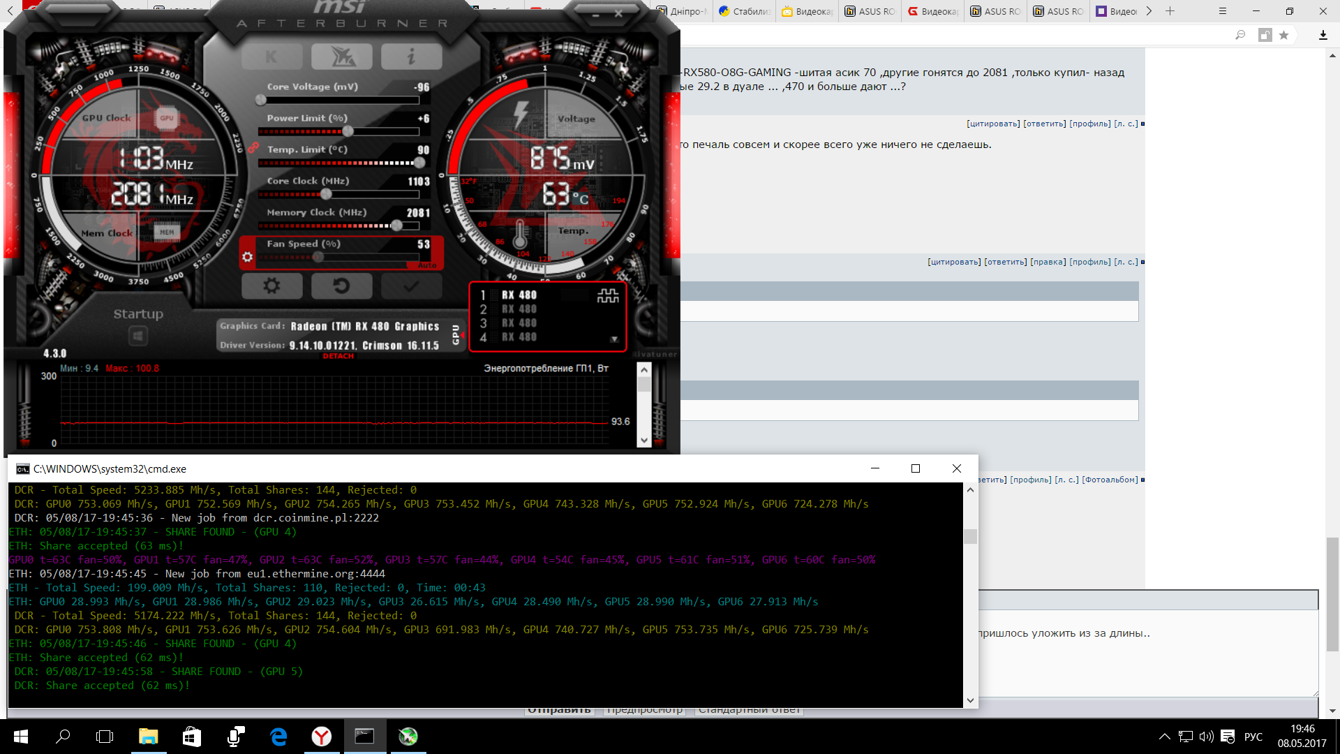 Добавлено спустя 16 минут 1 секунду: Подскажите что с картой делать больше 2000 мегагерц- не как не толкнуть ,такая вот ASUS ROG-STRIX-RX580-O8G-GAMING -шитая асик 70 ,другие гонятся до 2081 ,только купил- назад отправлять или пусть работает ,как бы дороговато для такой карты всего 27,9 мегагешь копать остальные 29.2 в дуале ... ,470 и больше дают ...?
