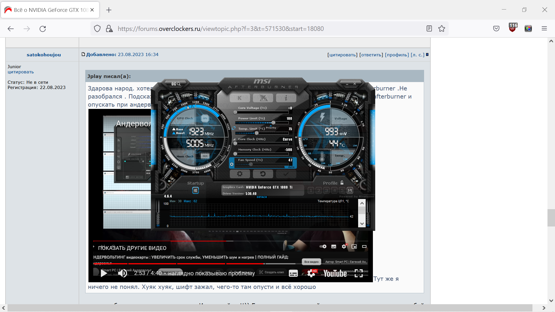 Здарова народ. хотел сделать андервольт gtx 1080т с кривой частот и напряжений в MSI Afterburner .Не разобрался . Подскажите пожалуйста, как понять на сколько нужно поднимать кривую в msi afterburner и опускать при андервольтинге? Понять не могуТут же я ничего не понял. Хуяк хуяк, шифт зажал, чего-то там опусти и всё хорошо