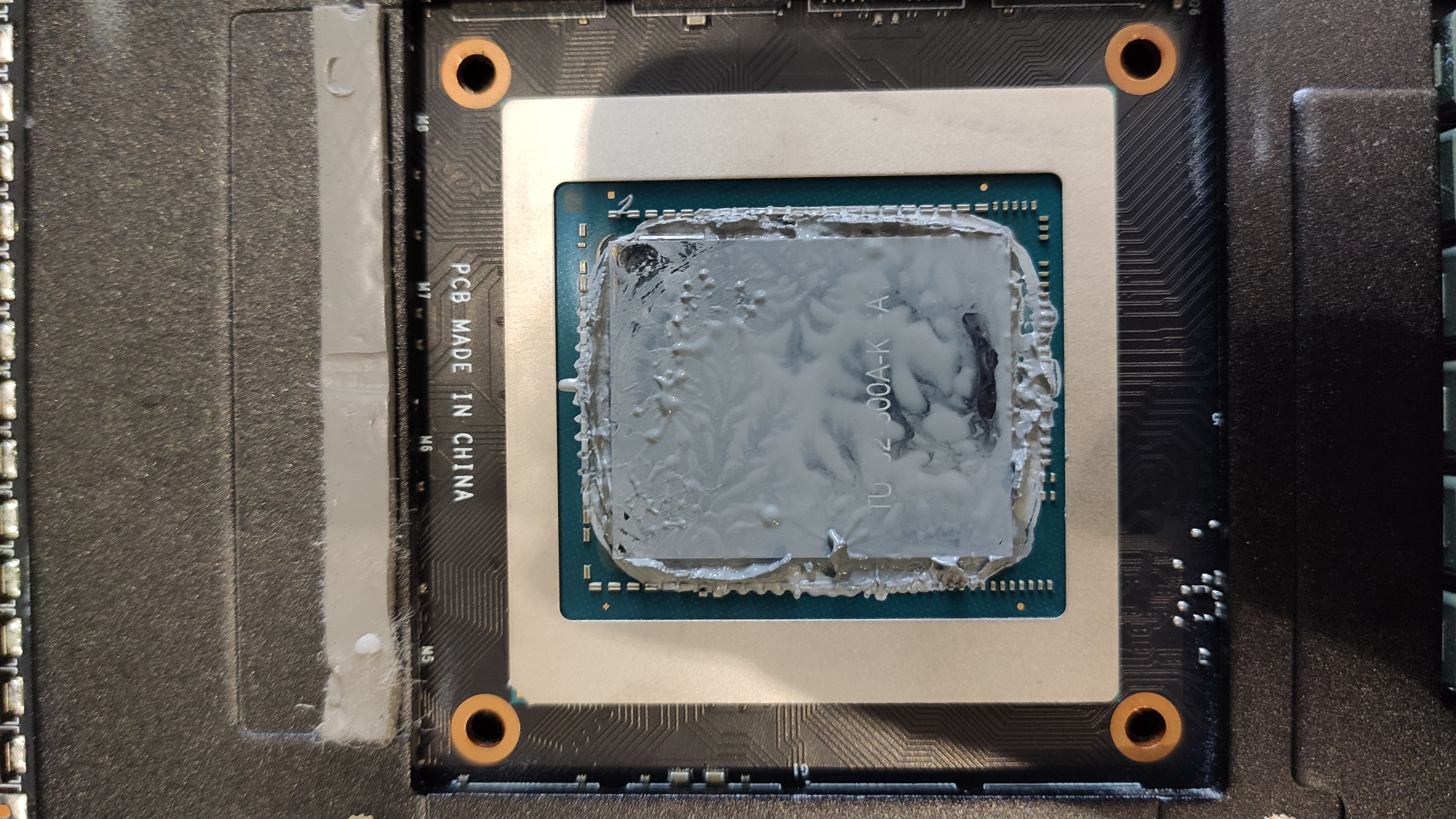 Купил свою MSI RTX 2080 ti Trio в декабре, то есть карте менее полугода. Проблем с температурами не наблюдал (они были немалые, но за 80 даже в разгоне не переваливали). В последнее время стал замечать, что температуры значительно выросли - в разгоне карту не сложно раскочегарить до 86 даже с агрессивной настройкой вентиляторов. На полном дефолте карта греется до 80 и даже чуть выше. На дефолтных частотах с более агрессивной настройкой вентиляторов - с трудом удается удержать на 80. Долго думал как быть, но в итоге, в свете планов на сборку контура летом, решил плюнуть на гарантию и перемазать пасту, заодно посмотреть что там творится. Родная паста имеет нормальную консистенцию (похожа на Arctic MX4), но качество нанесения, как мне кажется, вызывает вопросы (фото прилагаю, пусть спецы посмотрят, норм это или нет). В общем, перемазал пасту на Thermal Grizzly Kryonaut. И, о чудо, при тех же условиях (дефолт по частотам + кастомная кривая кулера) температура упала с 80 до 68 (!). Обороты при этом не превышают 70%. Думаю, теперь можно и в разгоне, и с менее агрессивными оборотами поиграться.