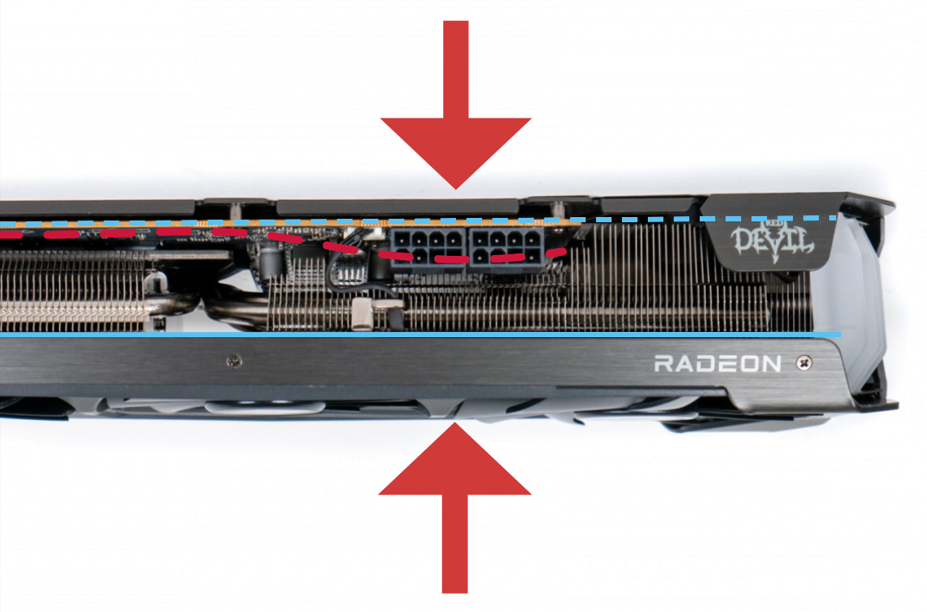 после профилактики обнаружилась настоящая причина - неудачная конструкция бэкплейта (промежутки в ребрах жесткости), который при хвате в районе разъемов, при подключении питания, незаметно прогинался вместе с pcb и запоминал форму под тяжестью кабелей. Подпорка в этом случае, даже аккурат под разъемами, погоды не делает. Выправлять бэкплейт не стал, на работе пока не отражается, только косметически портит вид карты сбоку.