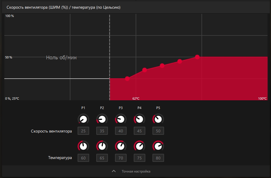 по умолчанию кривая вентилей настроена плохо, хотспот сначала поджаривается, затем врубаются вентили процентов на 80%, меня такое не устроило, переделал