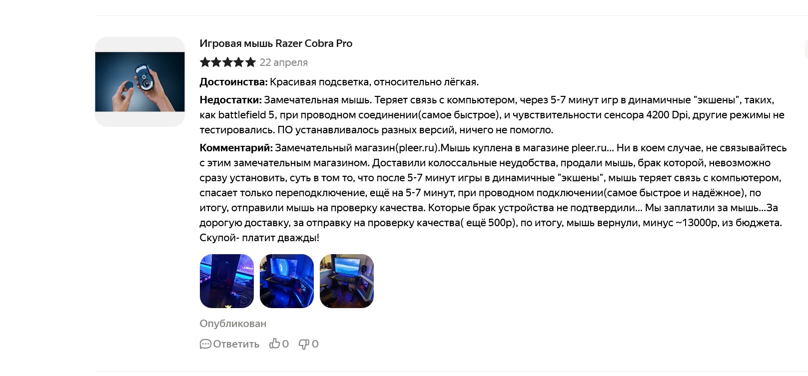boengМеня рейзер приземлил ппц... Топовая Кобра Про отваливается в баттле 5... В шоке... И по гарантии прокатили, не выявили...Магазин закрыл(плеер.ру)...