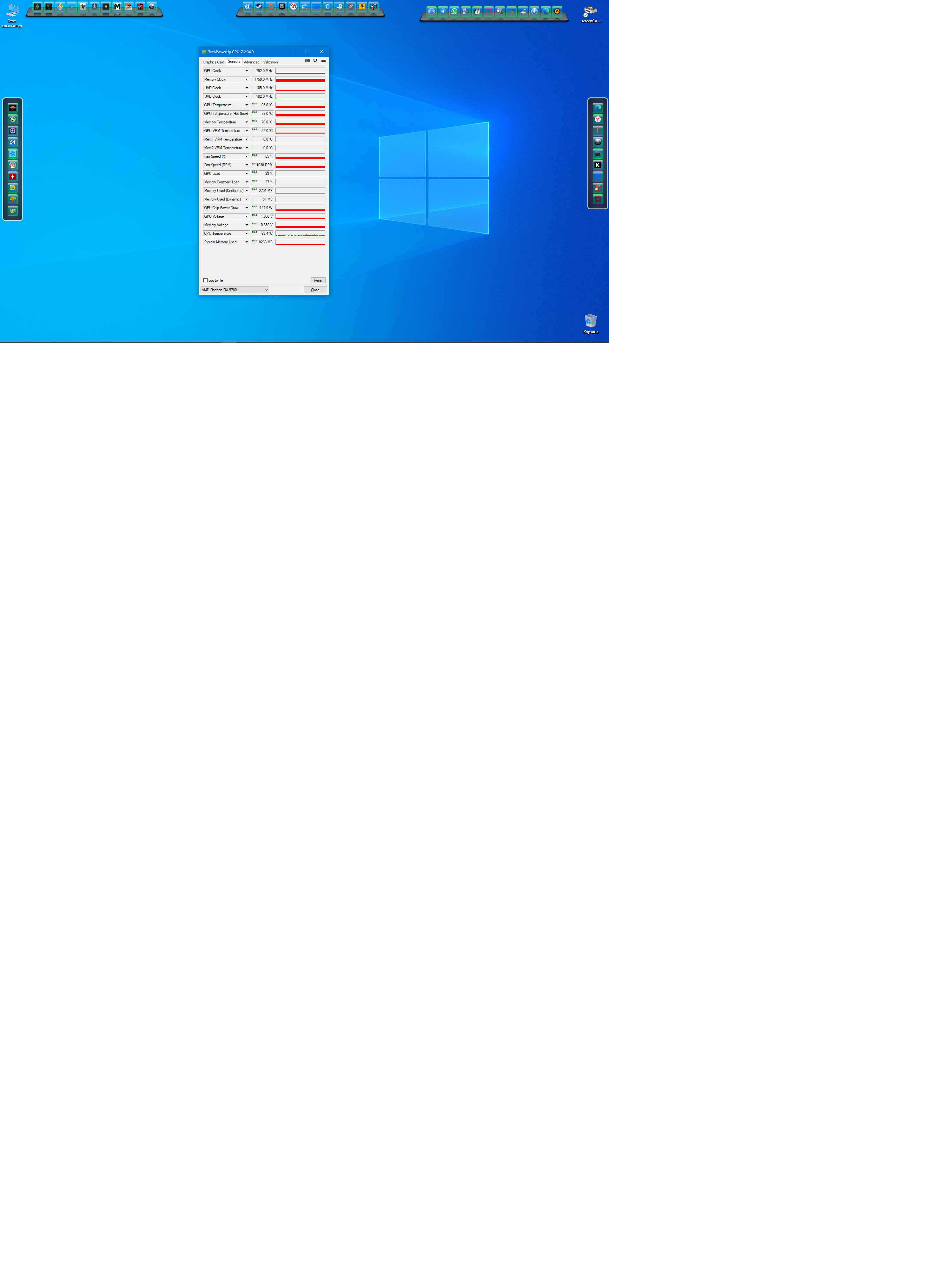 Я на работе, вот фото теста с телефона, к сожалению, без самого пика. Идет тест со 2 шейдером, в окошке "напряжение" в середине скачки GPU от 0 до 0,8 - это ожидание между тестами и видно как при начале теста все поднимается и идет на одной высоте в 0,9 и все идет норм. При 3 шейдере красная полоса один раз уходит на 1,04 и тест останавливается. При всех других тестах (памяти, проца, системы в целом) напряжение ГП как на этом фото, к 1 даже не подходит. Внизу датчики адреналина, справа GPU-z. В простое адреналин показывает ГП-0, напряжение - 0, энергопотреб-7W. В одной из программ мониторинга при тестах видел, что стояли мертво цифры 12+ 12,264. Но проверю сегодня и в HWmonitor.