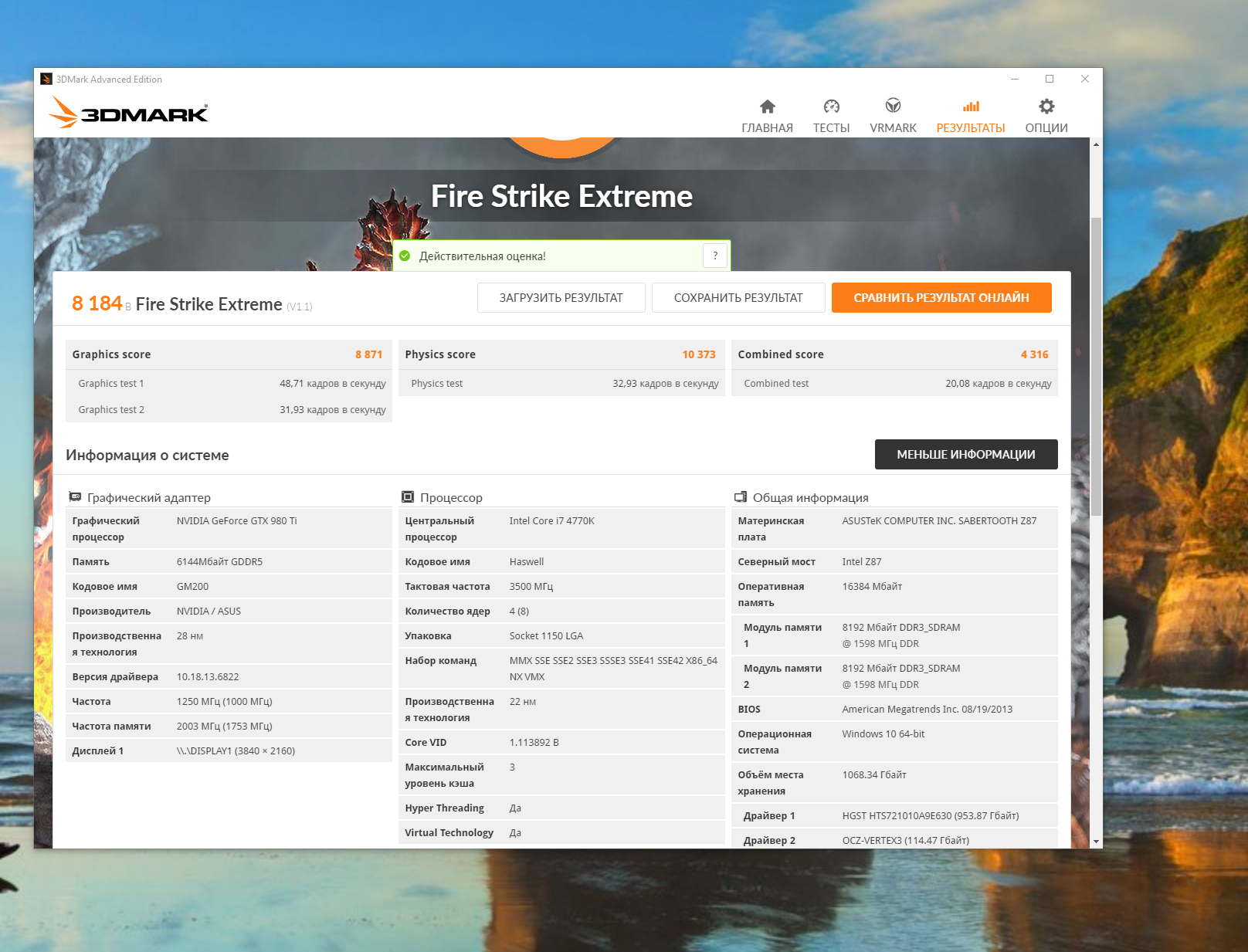 Напряжение не должно меняться. Я о том, что для 1500х8400 ~10к - низковатый рез. Gigabyte G1 и Gigabyte Xtreme, стоковые напряжения (для g1 - пониженное, 1.174в, 1.199в для Xtreme). 1488х8000 http://www.3dmark.com/fs/8080719 Graphics Score 10 071 1528х8500 http://www.3dmark.com/fs/8566652 Graphics Score 10 335 1500х8700 http://www.3dmark.com/fs/8560786 Graphics Score 10 248 Вопрос, как к специалисту. Если карта на воздухе с асиком 80.7% нормально реагирует на напряжение(1.255->1.274в прибавляют 20-30МГц), то под азотом/фреонкой как она себя поведет под более высокими напряжениями? И для gigabyte вольтмодами не занимался?