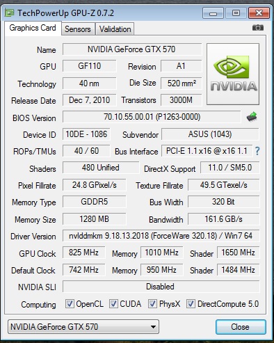Профиль заполнил. Контакты протер, видео встроенное выключено, драйвера на него не установлены, на самой карте с лупой рассматривал все на предмет оторванных элементов: все на месте, охлад с видяхи никогда не снимался - пломба на винтике целая, дрова все обновил, блок точно нормальный так как тянул в разгоне 470-ю. Что еще проверить не знаю. В полноэкранном рендеринге тоже х4 показывает