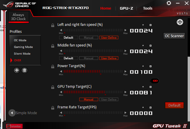 Всем привет, приобрел 2070 ASUS ROG и попытался через фирменную утилиту разогнать. Скажите пожалуйста, значения адекватные? Спрашиваю потому, что в некоторых играх ( HL Deathmatch Source, TF2) наблюдается проблемы с зависанием игры наглухо, при изменении настроек разрешения. А State of Decay 2 не вылетает, только если разгон выключить совсем. В остальных игорах все отлично. Встречался ли кто-нибудь с подобным? Взаранее благодарен.