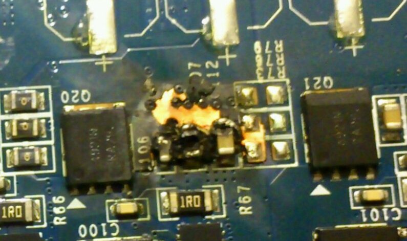 С видеокартой gigabyte GV-N570OC-13I (rev. 2.0). Возможно ли лечение, при наличии прямых рук и других атрибутов, и что там конкретно сгорело. Карта работает но только при низких нагрузках, при высоких спустя минуту-другую комп перезагружается.