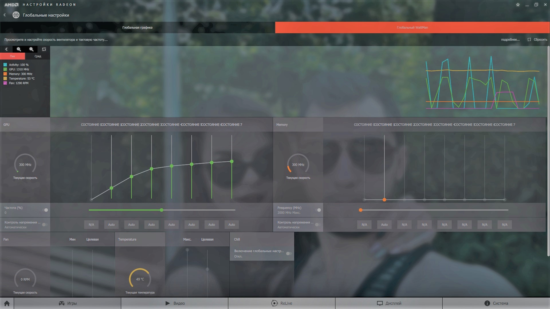 Q: Постоянно скачет частота памяти (или не снижается) в простое. A: При броузинге интернетов используется аппаратное ускорение - повышаются частоты чипа и памяти на некоторое время. Так же если у вас ДВА монитора, то частота памяти не будет снижается. Аналогичная ситуация для 144Гц мониторов.
