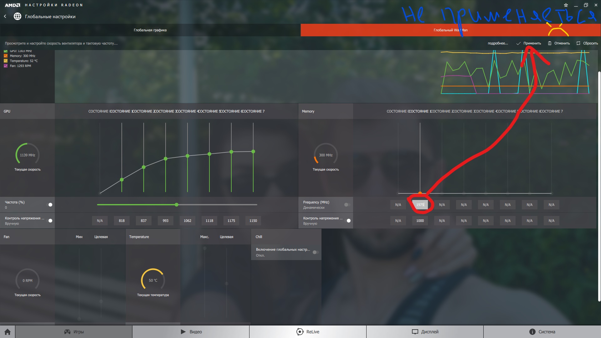 Q: Постоянно скачет частота памяти (или не снижается) в простое. A: При броузинге интернетов используется аппаратное ускорение - повышаются частоты чипа и памяти на некоторое время. Так же если у вас ДВА монитора, то частота памяти не будет снижается. Аналогичная ситуация для 144Гц мониторов.