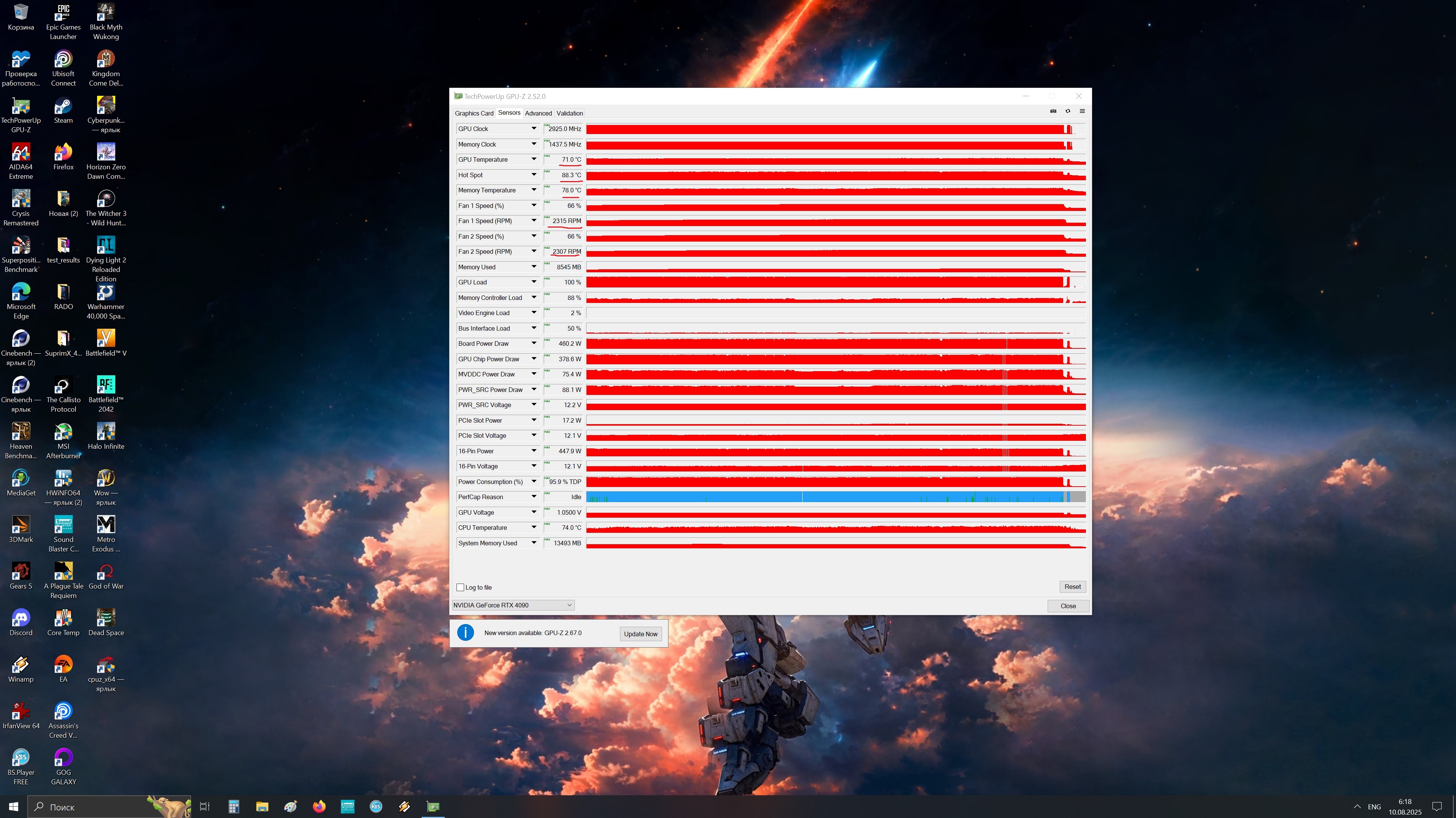 Вопрос появился давно, но созрел озвучить его только сейчас )) Видеокарта palit rtx 4080 gamerock. Какой штатный диапазон вращения вентиляторов у нее в автоматическом режиме? в P - биосе. Потому что когда я ее брал, мне казалось там в районе 1300, а примерно год назад стало подниматься и до 2200 влегкую в играх.