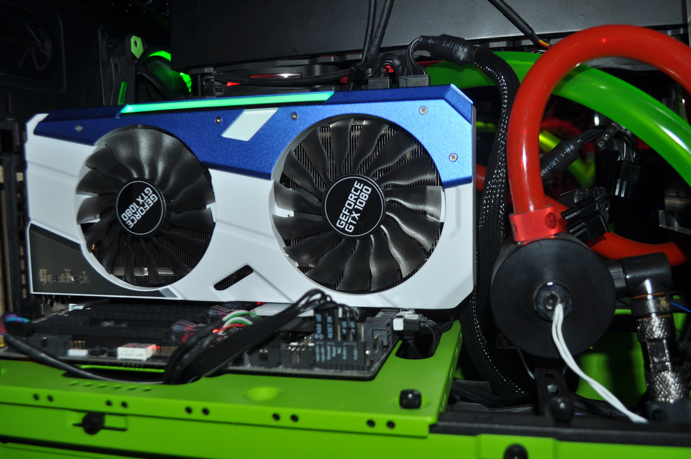 Итак, после первого неудачного опыта с Palit gtx1080 Gamerock Premium (попался брак, пищали дроссели под любой нагрузкой, СО не справлялось с нагрузкой даже на 100%RPM) сравниваю с новым экземпляром. Никаких посторонних шумов, СО шикарно справляется(за весь день, полный бенчмаркинга, не подвела ни разу, хотя поддавал и 1.193в на чип, выше для воздуха уже критично), разгон очень даже хороший(в принципе, и прошлый экземпляр гнался очень даже хорошо, если бы не брак - оставил бы себе, Zotac extreme был куда более плох в плане разгона). Внешний вид на любителя, SJS мне по расцветке всё же больше нравится