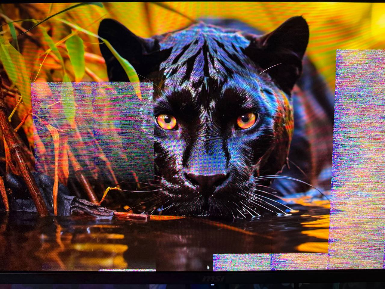 Добрый день, не подскажите куда копать? Есть 4080 SUPER Gigabyte GAMING OC и MSI MPG 271QRX. Изображение сыпется по DP во всех трёх разъёмах видеокарты. От разрешения и герцовки не зависит. ПО температурам всё холодно, на рабочем столе происходит. Точно не кабель, три штуки пробовал. К видеокарте подключён ещё LGOLED42C3RLA по HDMI, на нём никаких артефактов нет. Если включить режим дублирования экранов, на мониторе пропадают артефакты. Видеокарта концы отводит? Пример артефактов.